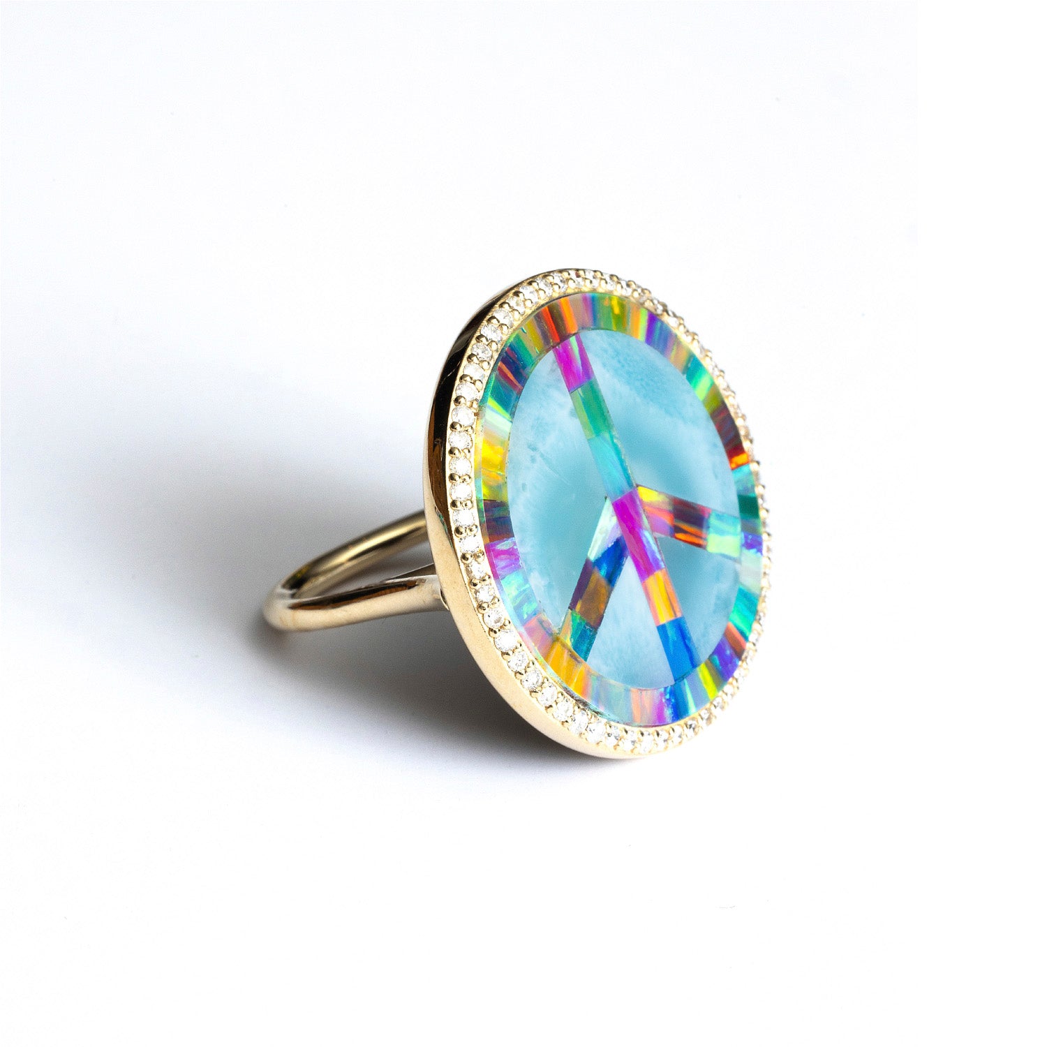 - Japanese created opal & larimar inlay; diamonds, approximately 0.58 carats