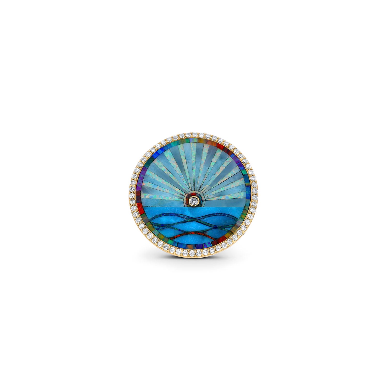 - Japanese created opal, turquoise & larimar inlay; diamonds, approximately 0.94 carats