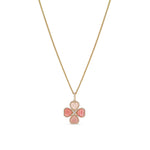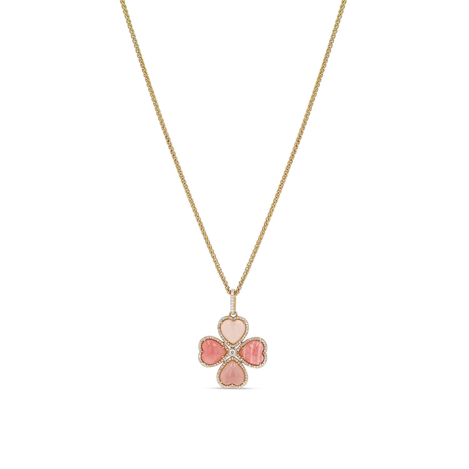 14k Pink Mix Stone Clover on 14k Wheat Chain Necklace - One of a Kind