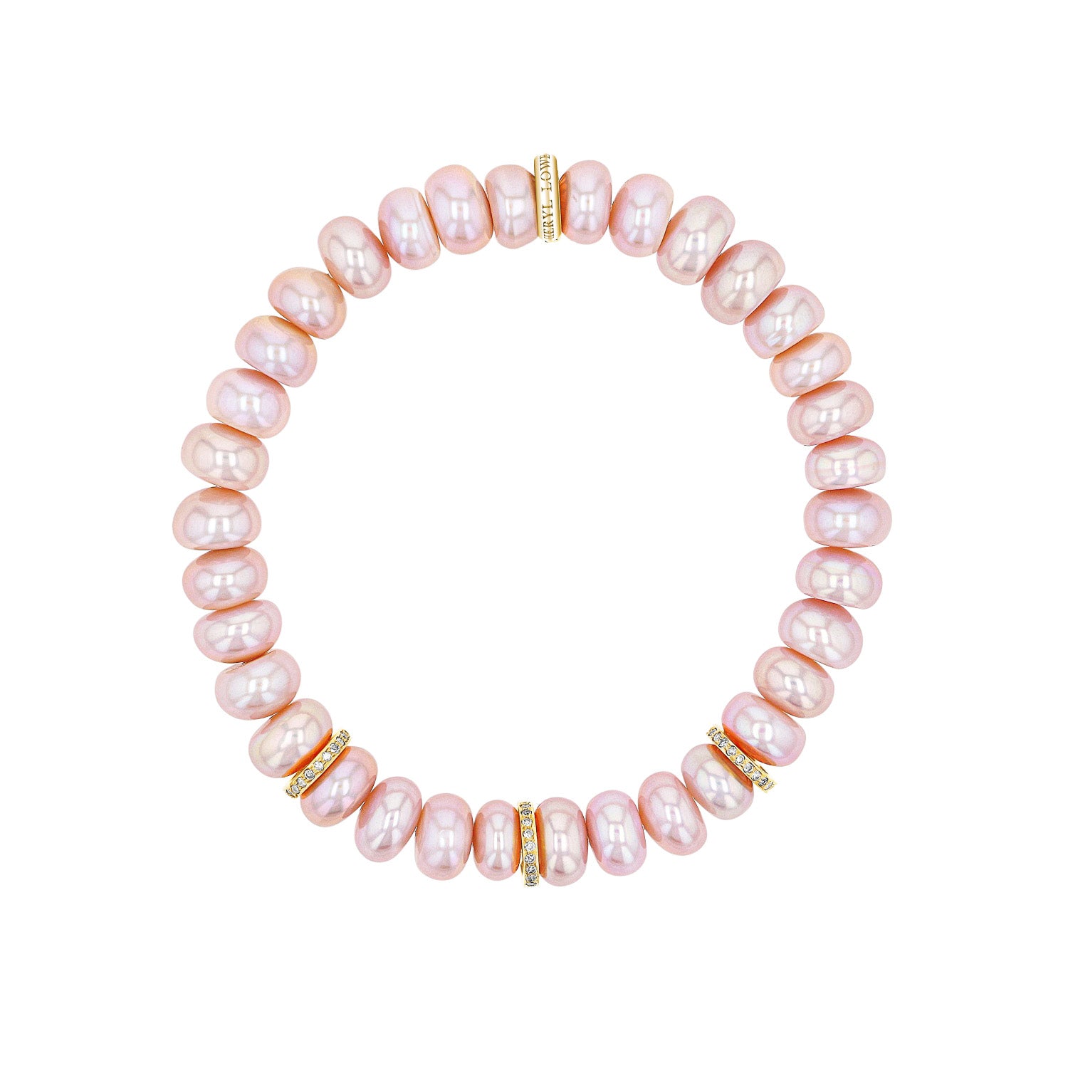 14k Pink Pearl Beaded Bracelet with 3 Diamond Rondelles - 8mm
