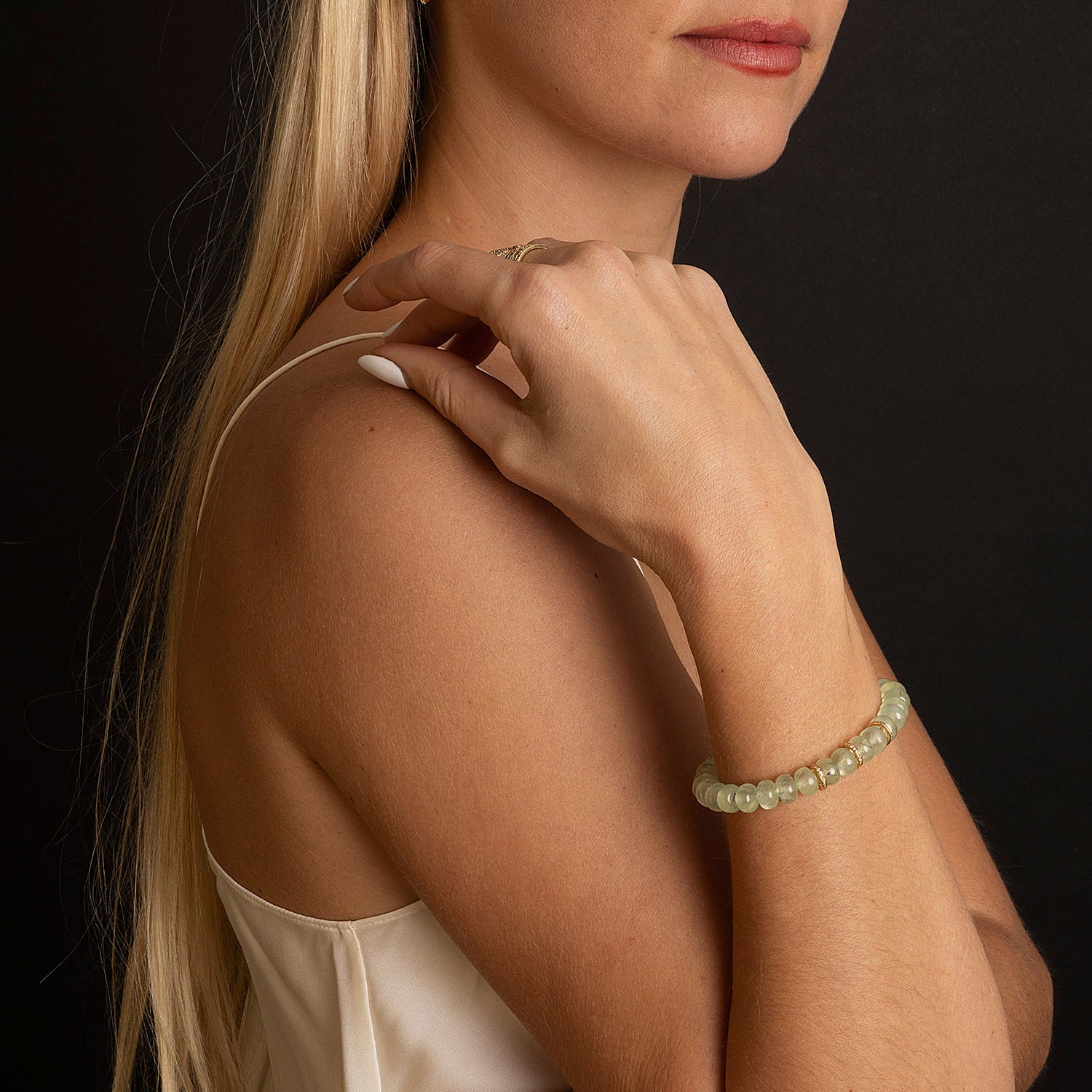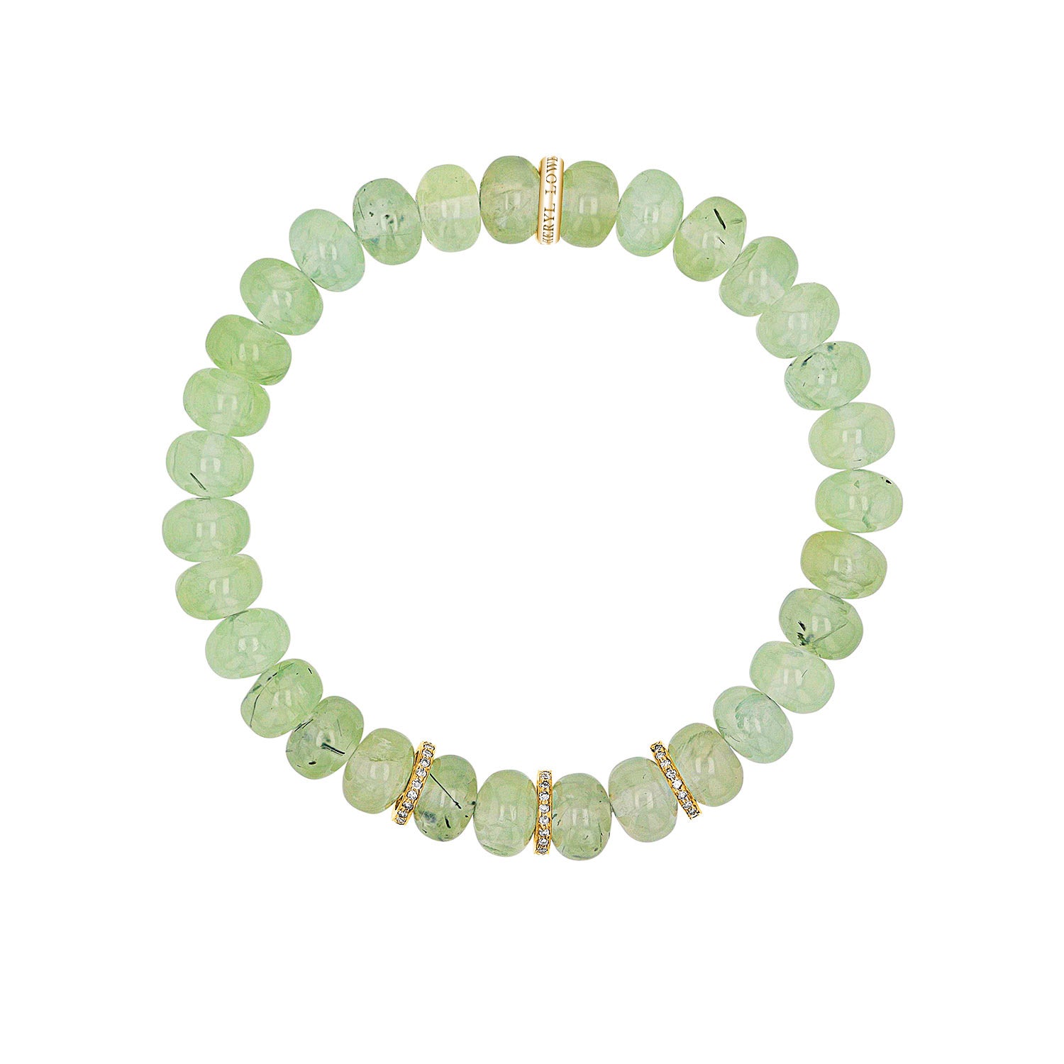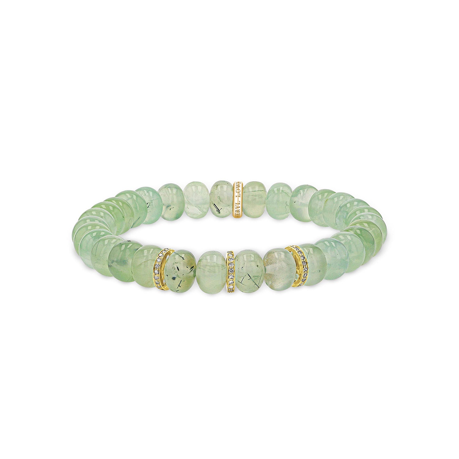 14k Prehnite Beaded Bracelet with 3 Diamond Rondelles - 8mm