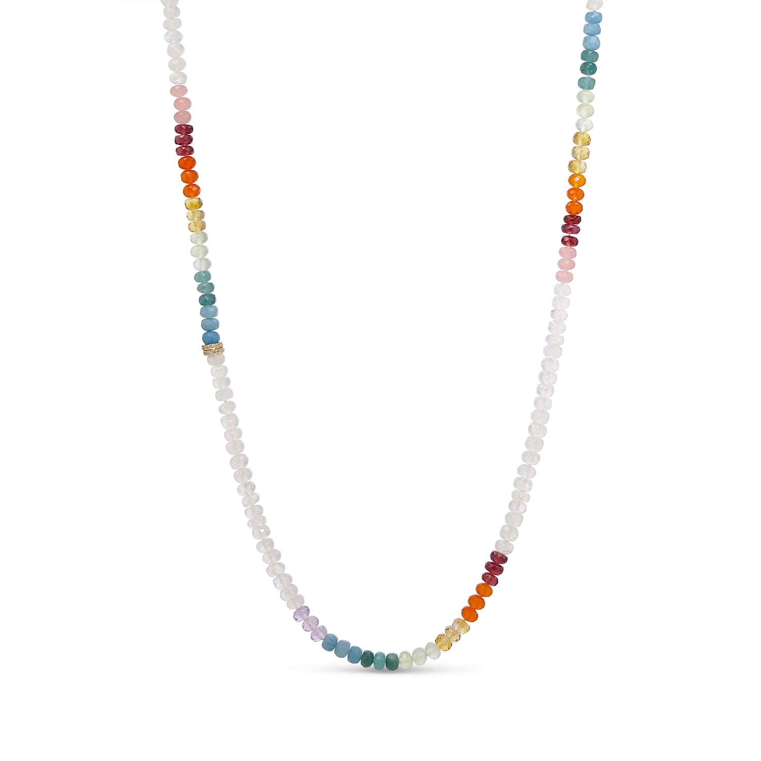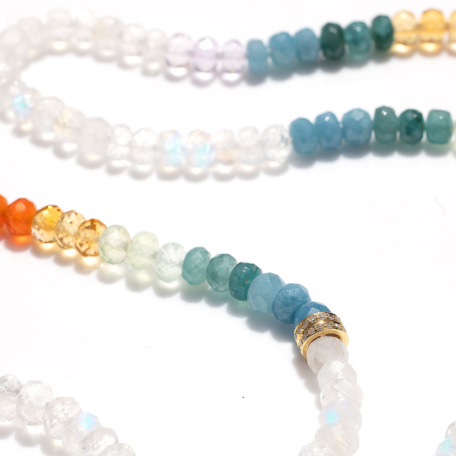 14k Rainbow Moonstone with Rainbow Mix Gemstone Necklace - 36"