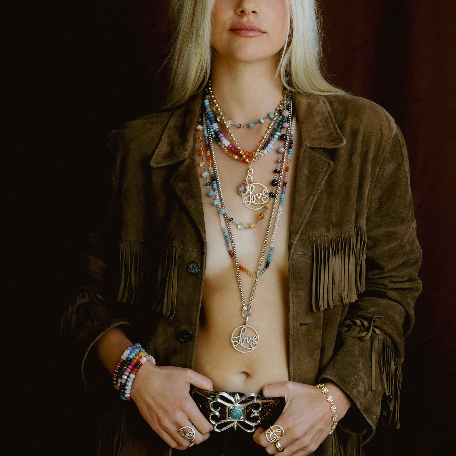 14k Rainbow Quartz Mix Bracelet with Diamond Rondelle - 7-8mm