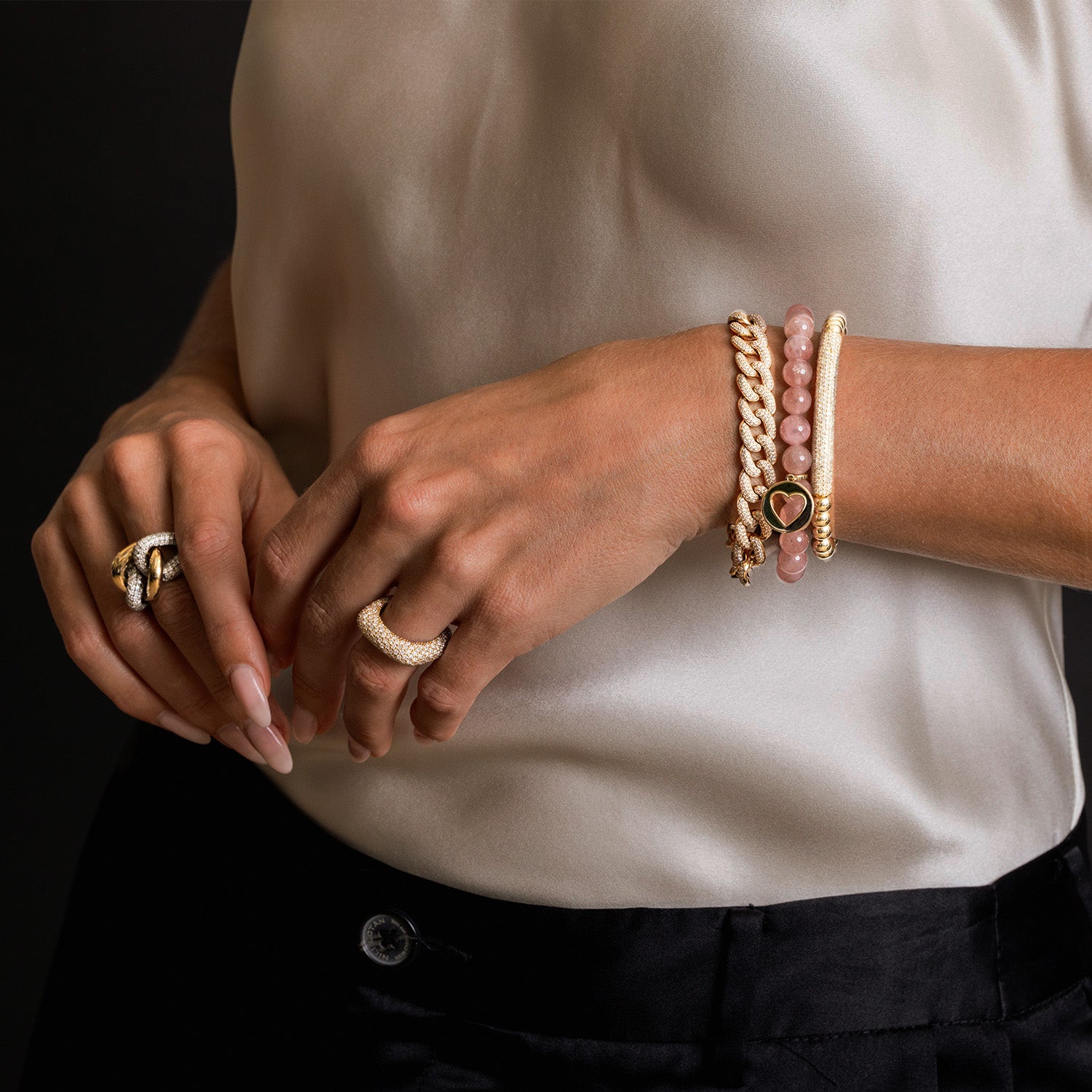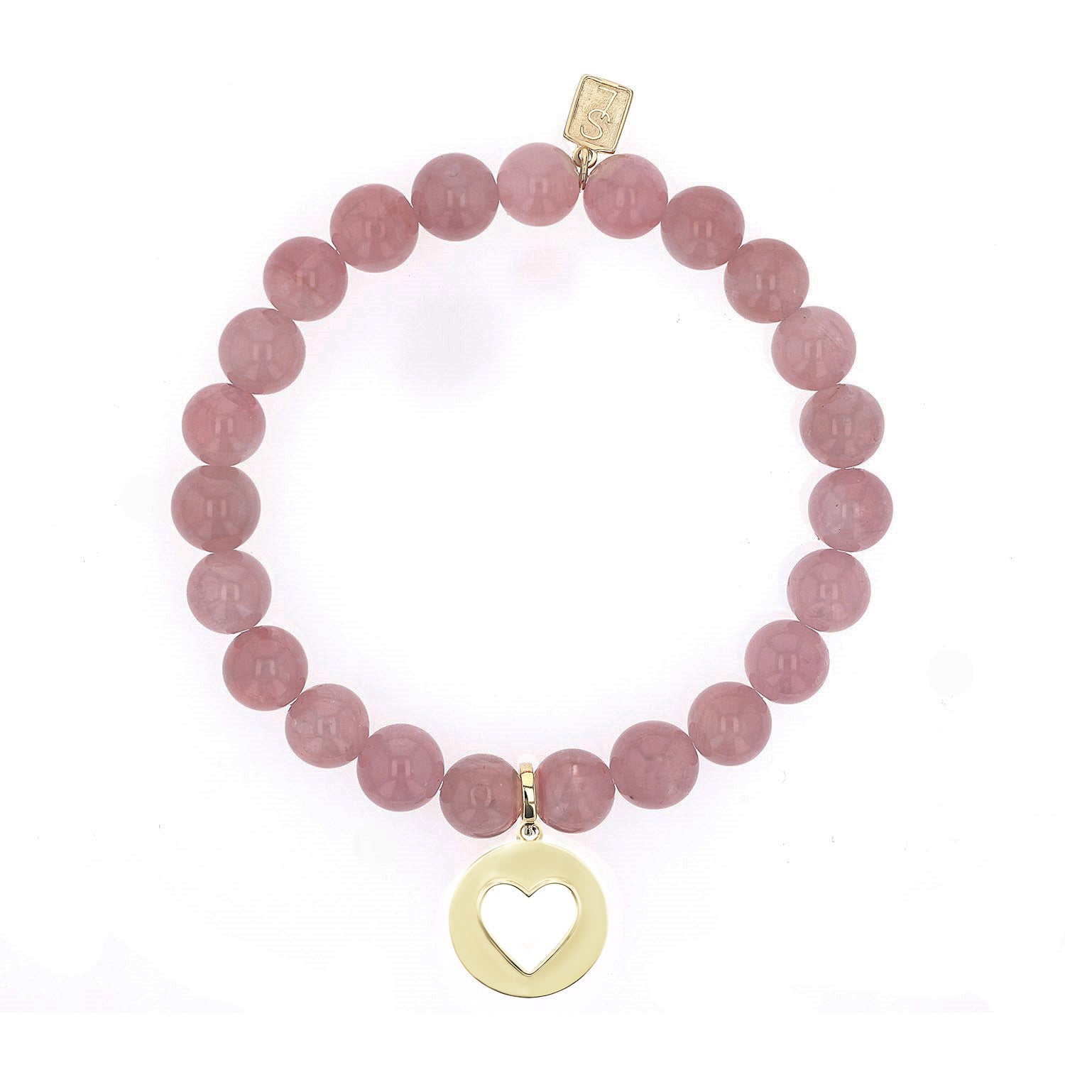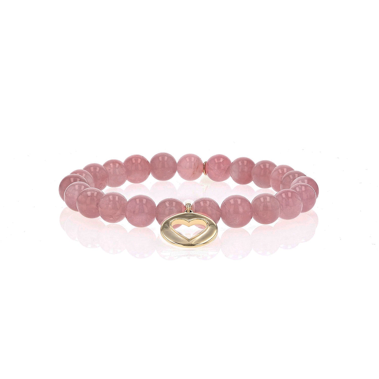 14k Rose Quartz Bracelet with Open Heart Charm - 8mm