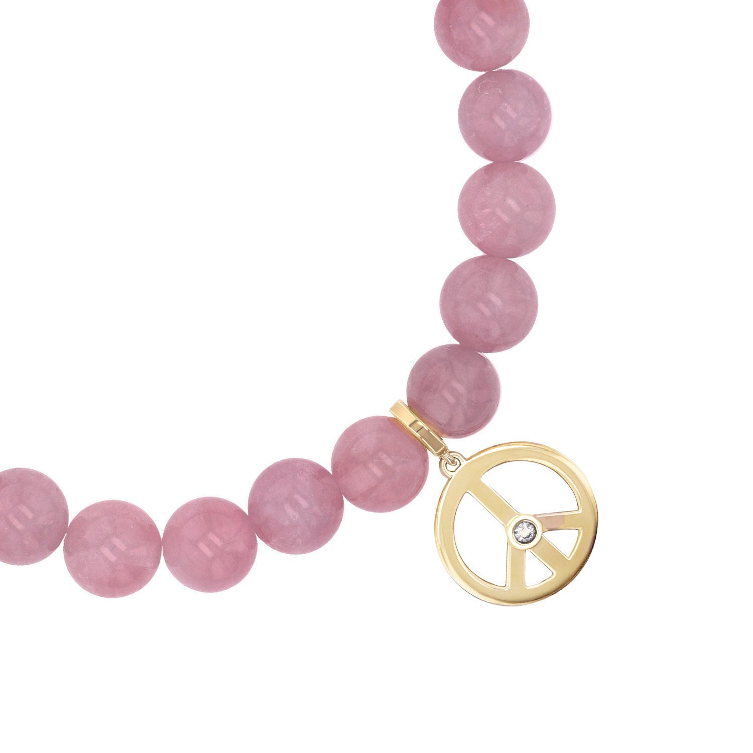 14k Rose Quartz Bracelet with Peace Sign Charm - 8mm