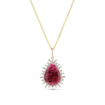 14k Rubellite Tourmaline Drop Necklace with Diamond Crown Setting