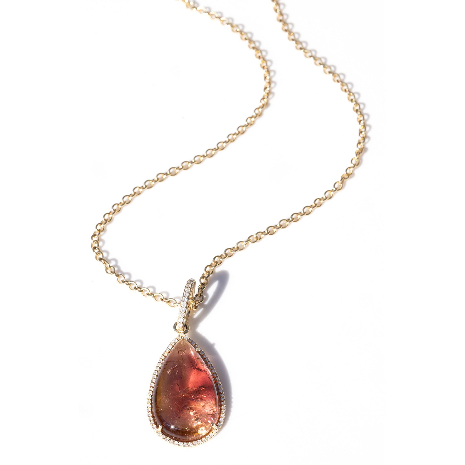 14k Russian Tourmaline Teardrop Pendants on Cable Chain - One of a Kind