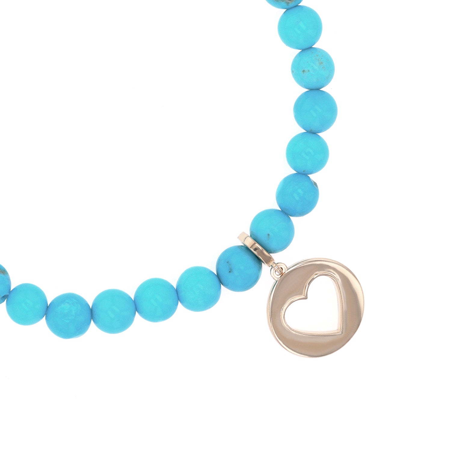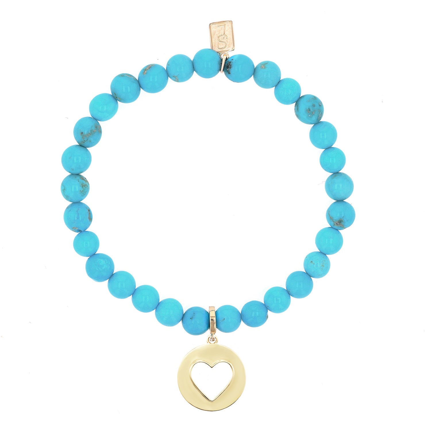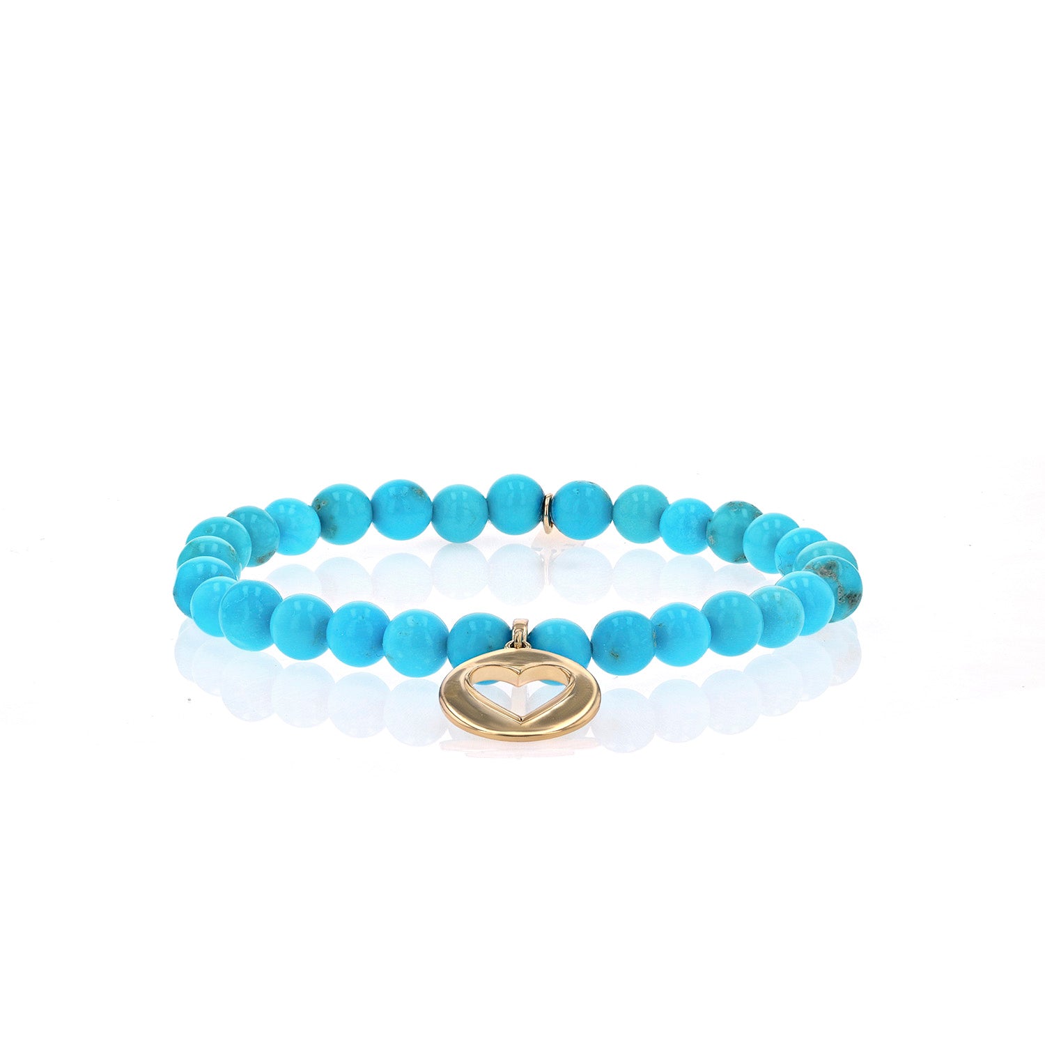 14k Sleeping Beauty Turquoise Bracelet with Open Heart Charm - 6mm