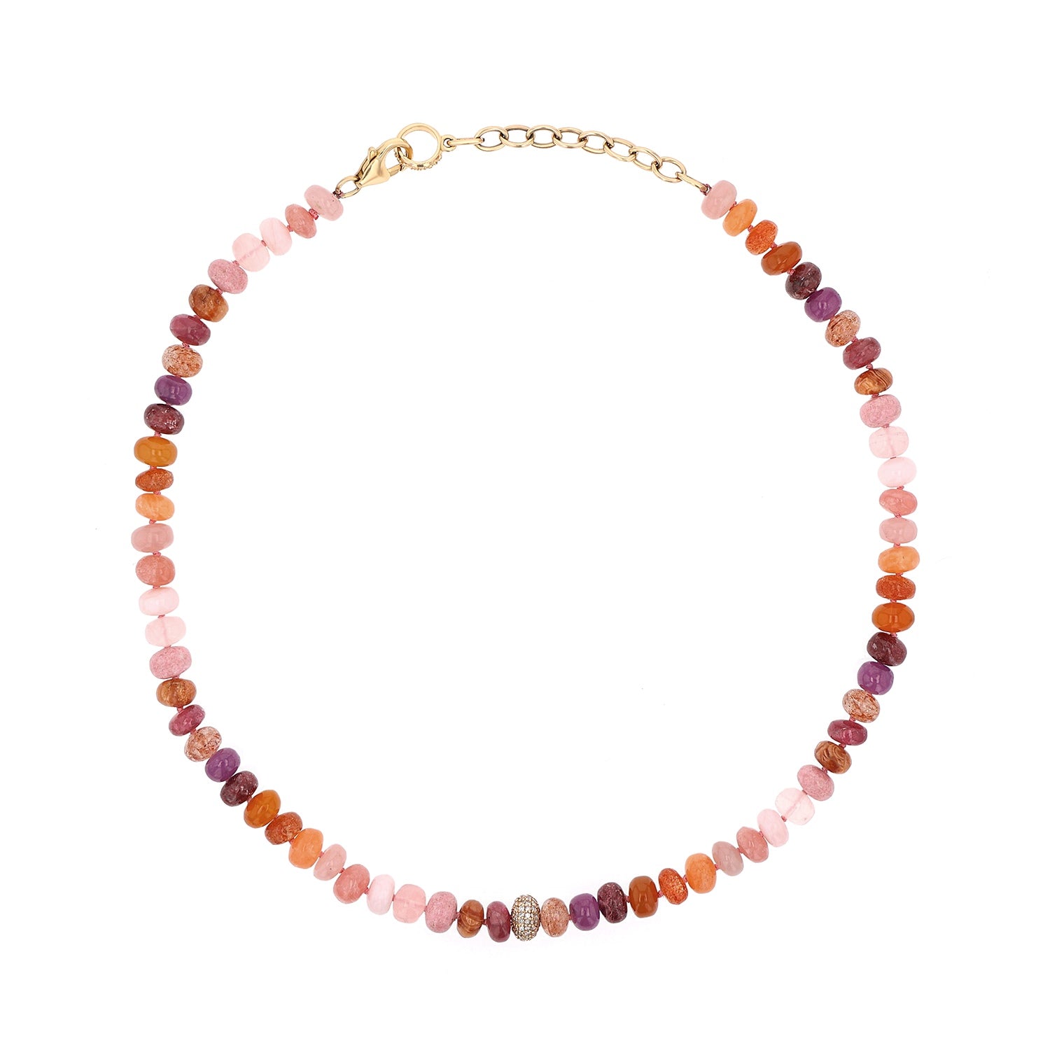 14K Sunset Mix Gemstone Knotted Necklace with Diamond Donut -15"