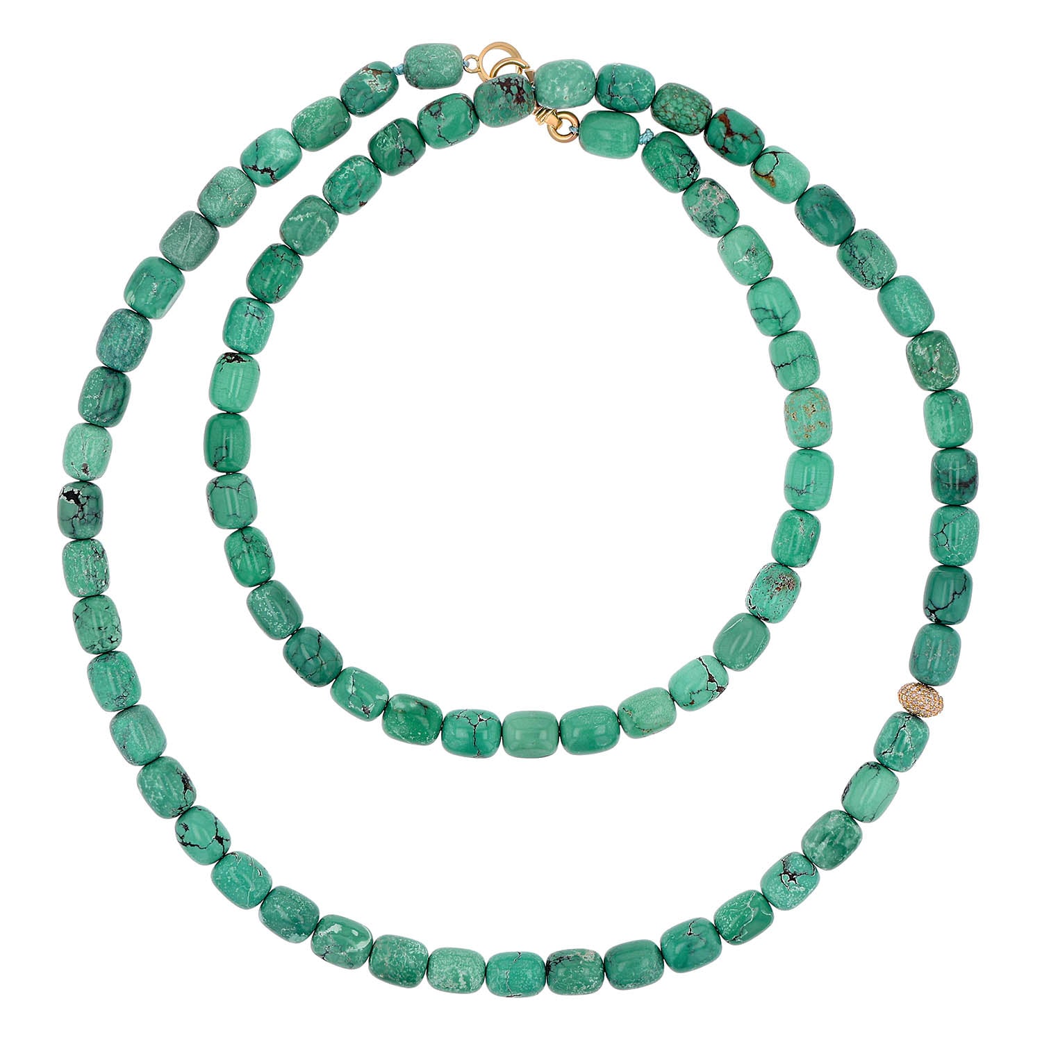 14k Turquoise Barrel Strung Necklace with Diamond Donut - One of a Kind