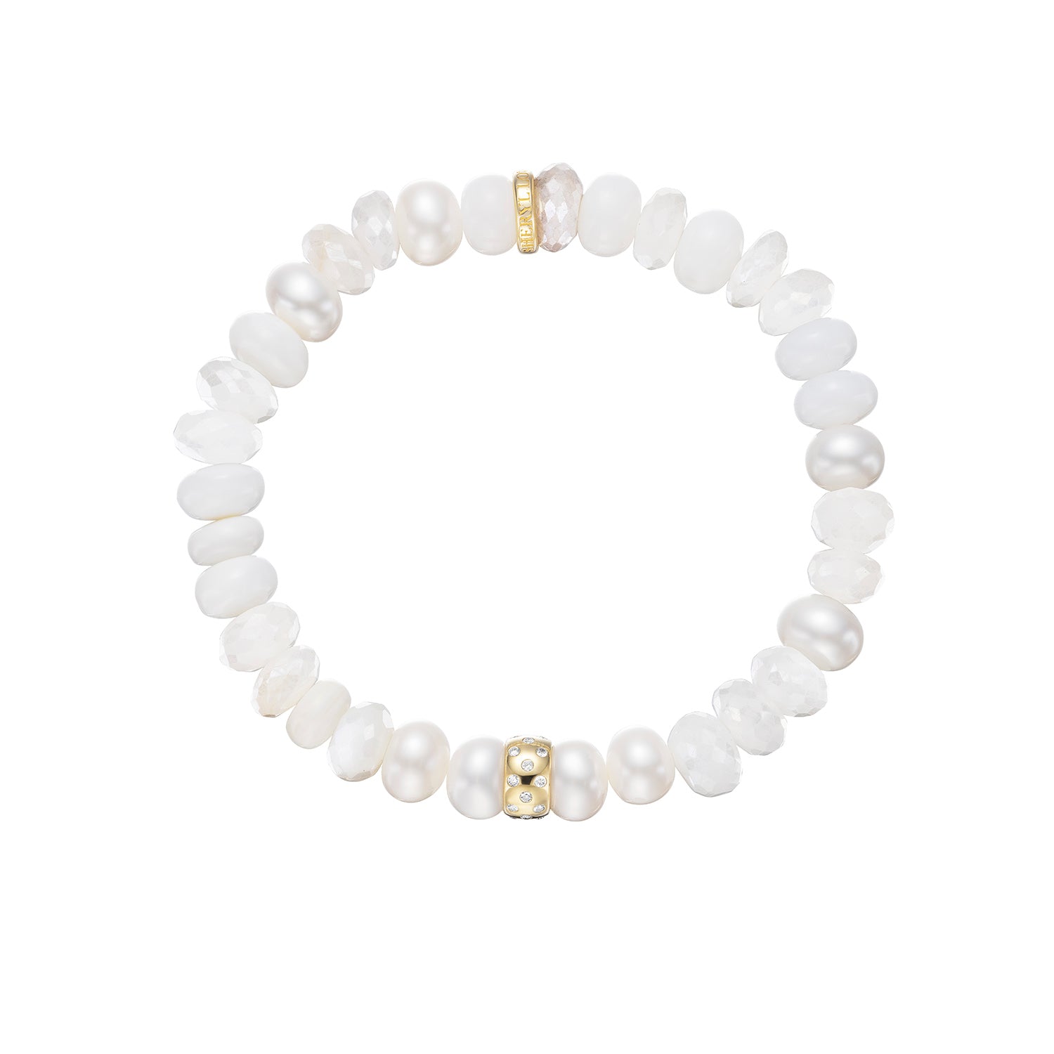 - 8mm smooth and faceted rondelle beads: one 8mm scattered flush set diamond rondelle