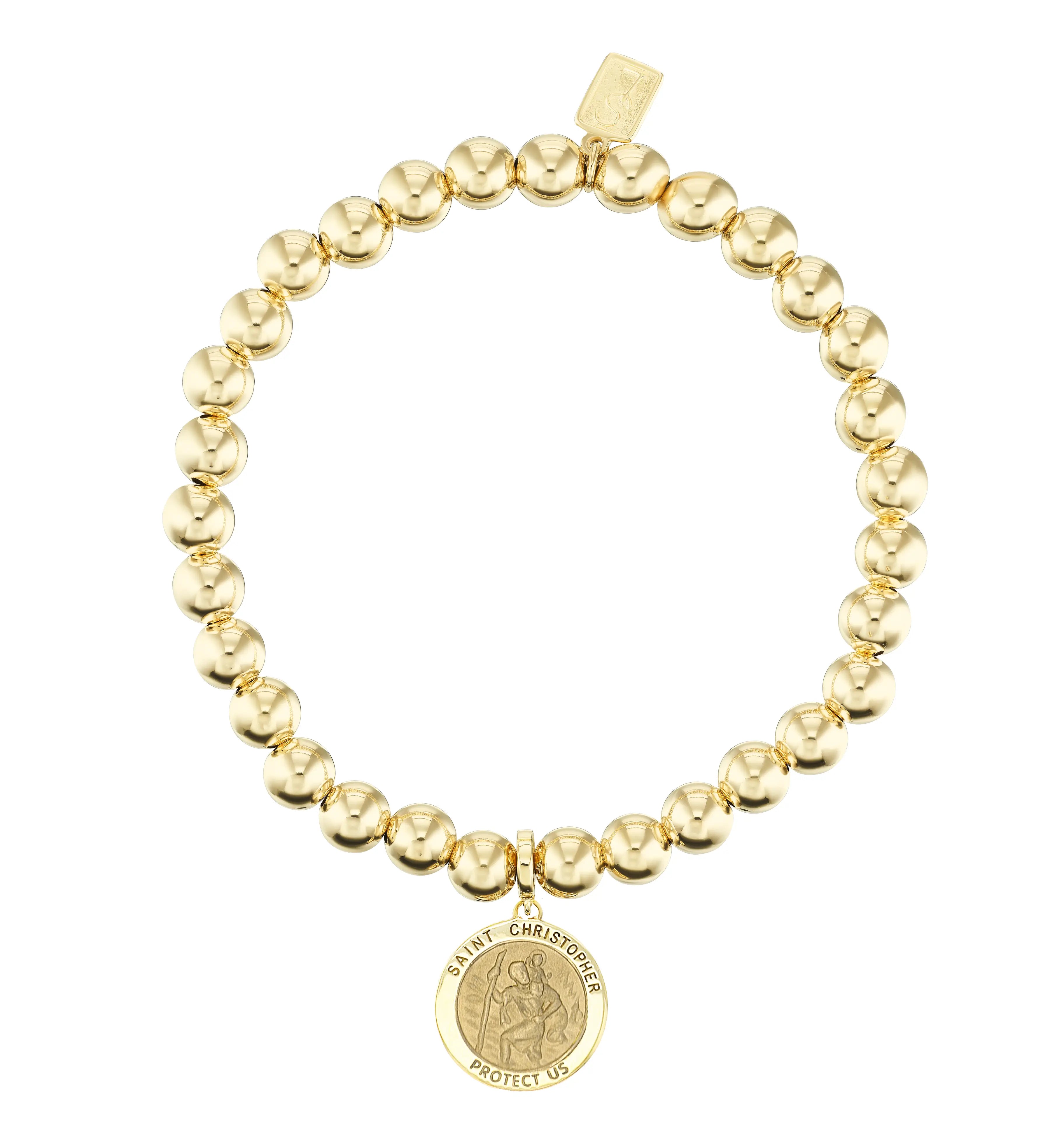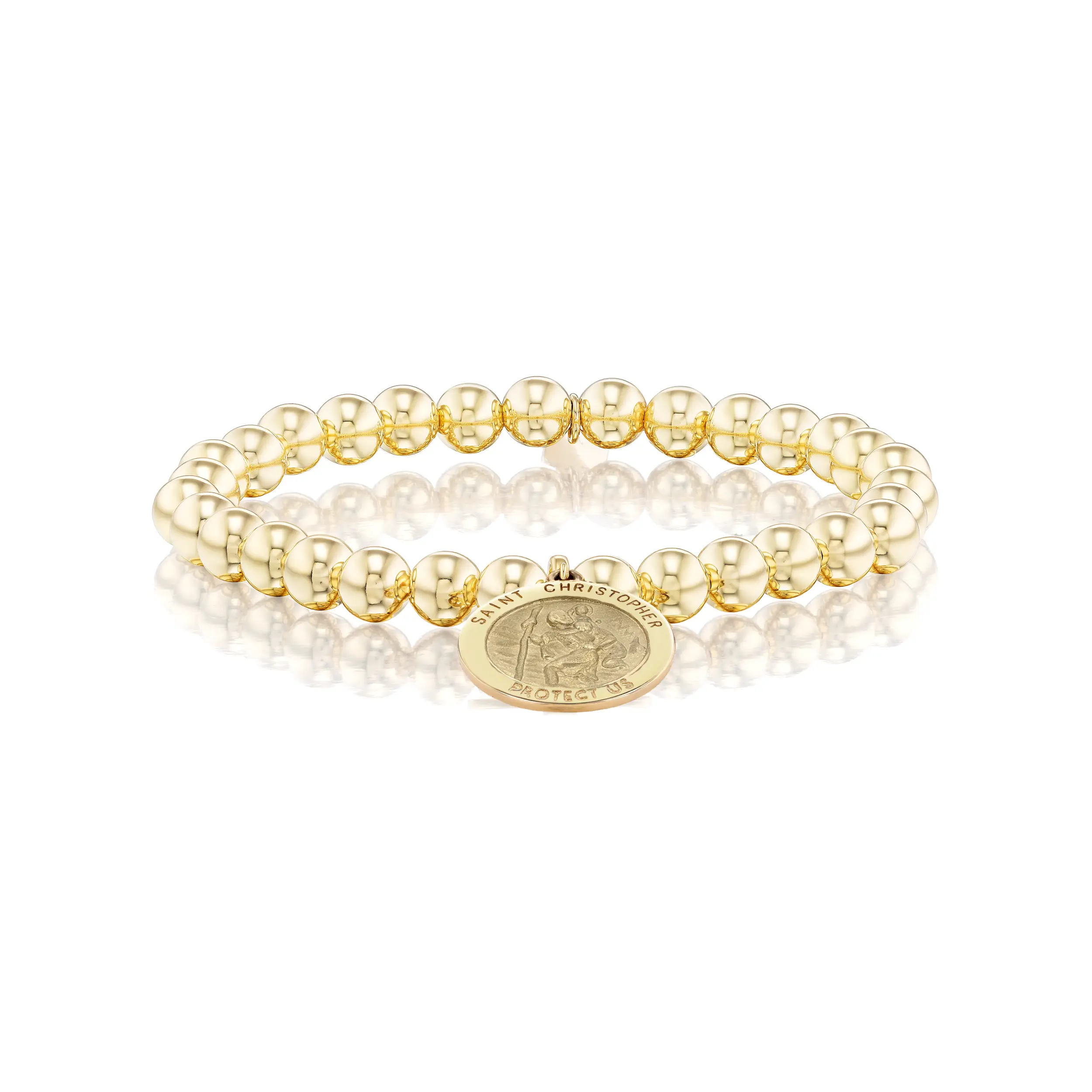14k Yellow Gold Beaded Bracelet with St. Christopher Charm - 6mm