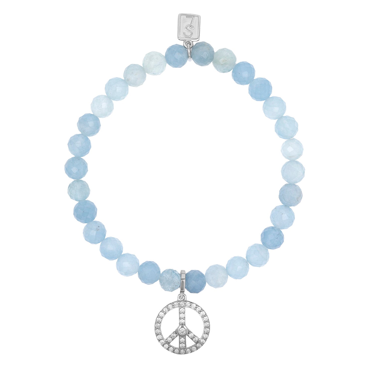 Aquamarine Bracelet with Diamond Peace Sign Charm - 6mm