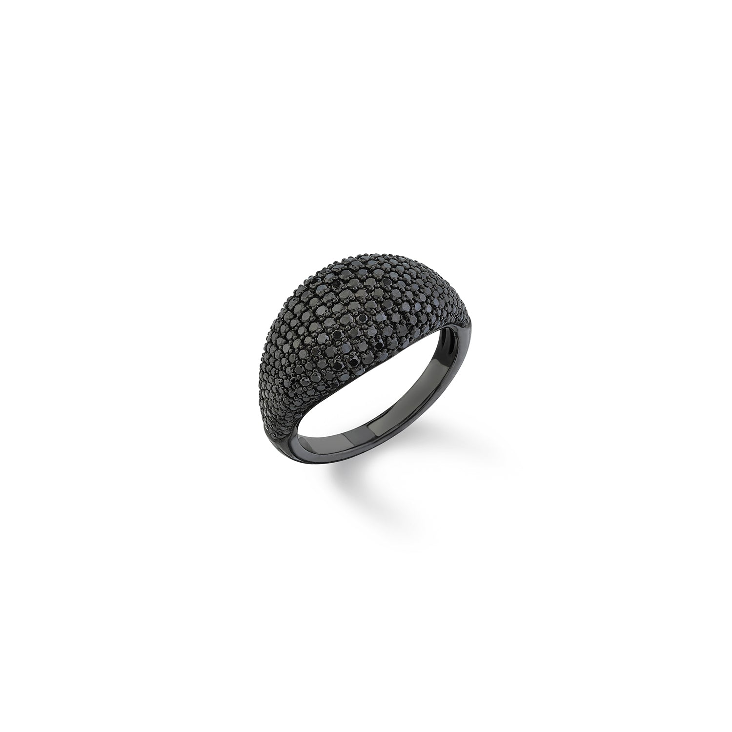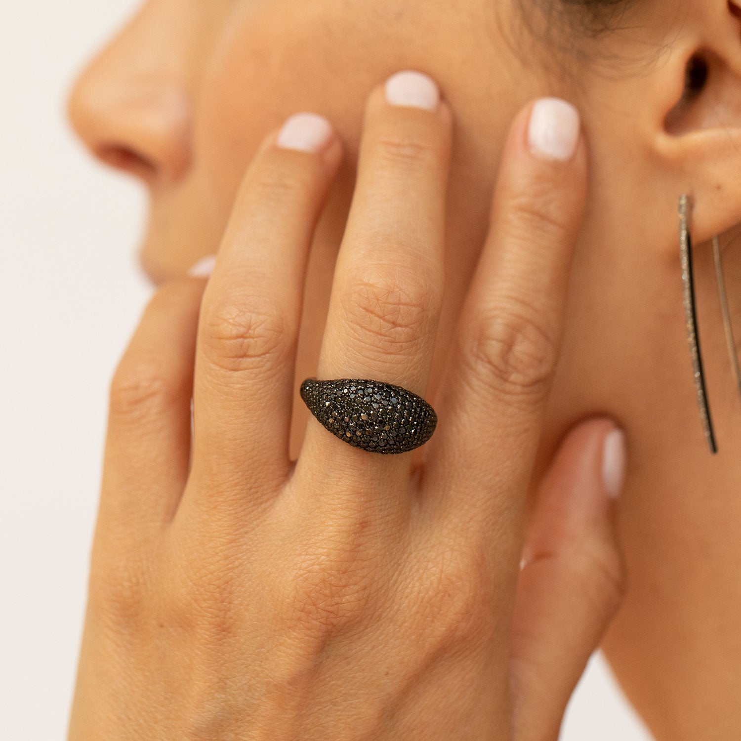 Sheryl's modern take on a classic signet ring, rounded edges and covered in black diamonds.