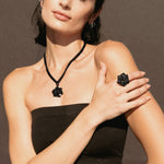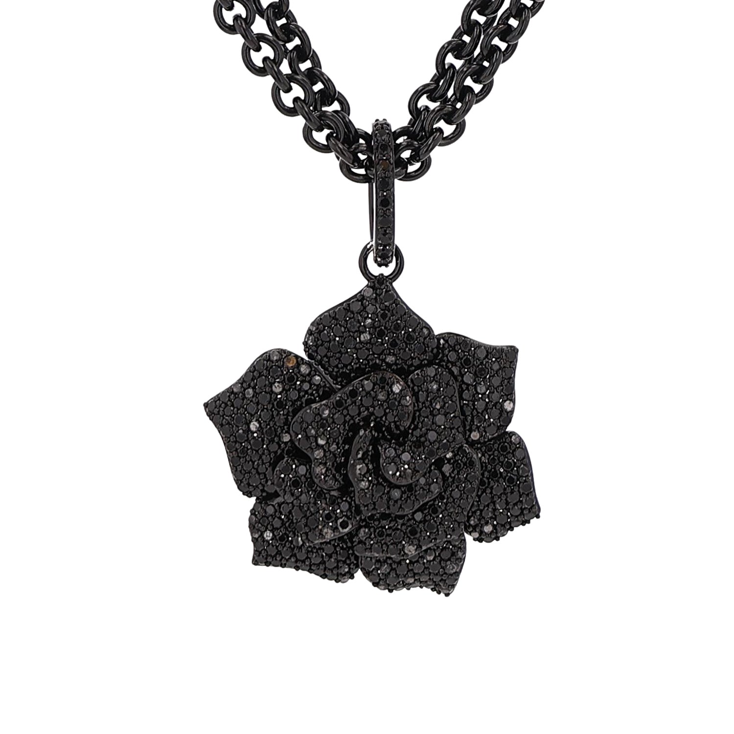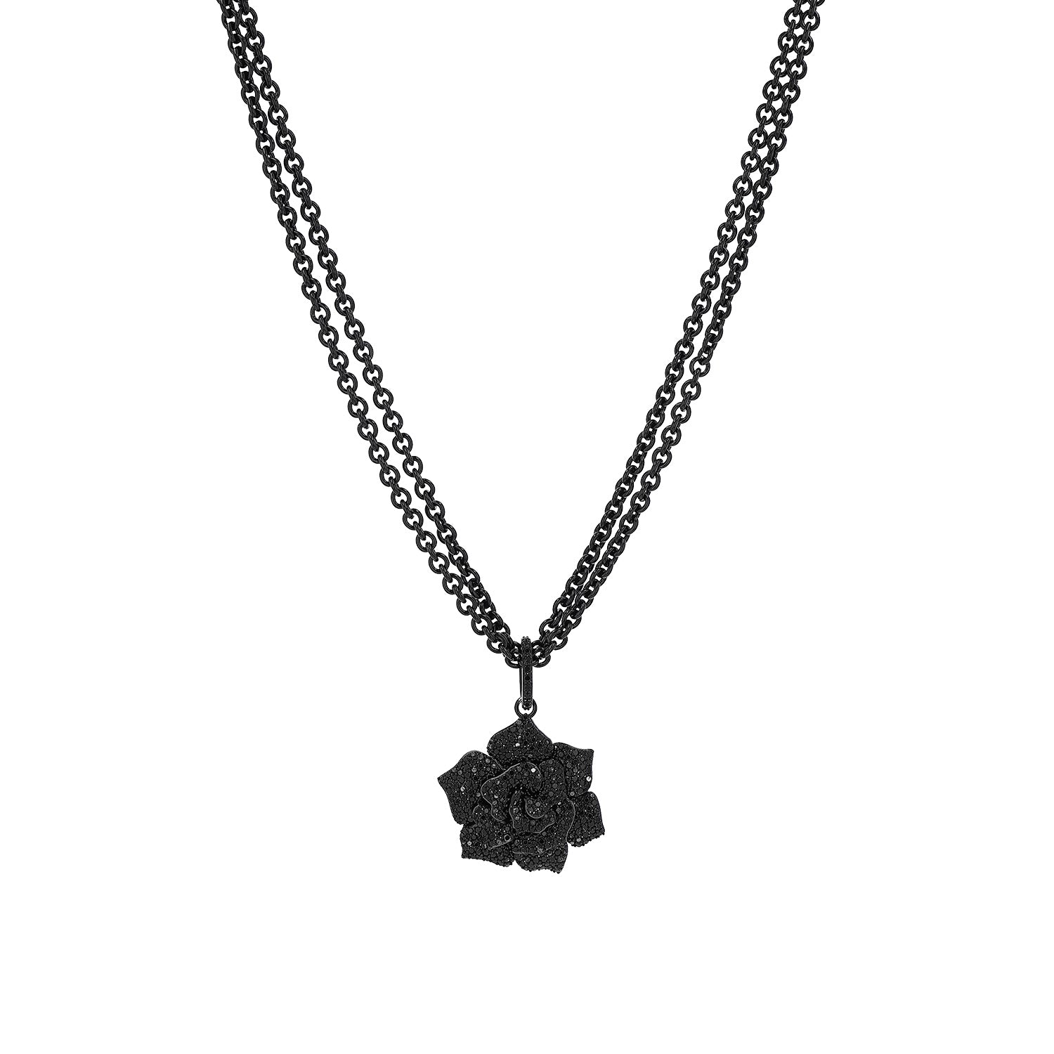 Black Diamond Rose Pendant on Double Cable Chain Necklace - 17"
