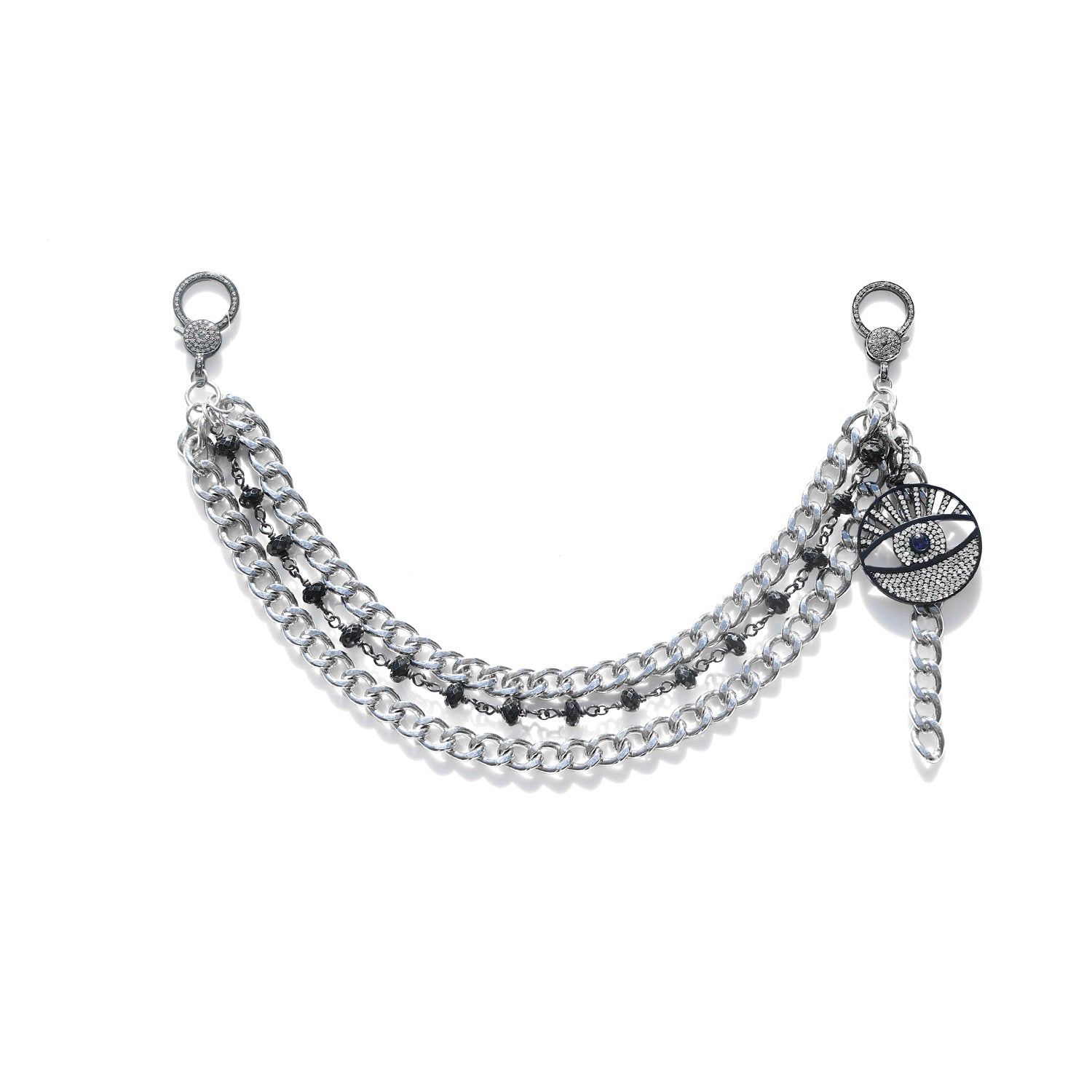 Curb Styling Chain with Black Rhodium Diamond Evil Eye - One of a Kind