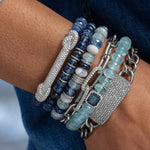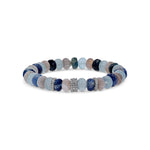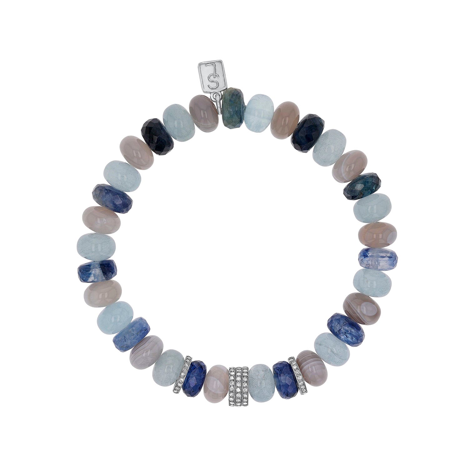 Blue & Grey Gemstone Mix Bracelet with 5 Diamond Rondelles - 8mm