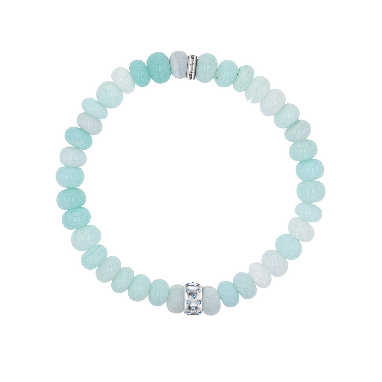 Blue Opal Beaded Bracelet with Blue Topaz Flush Set Rondelle - 7mm