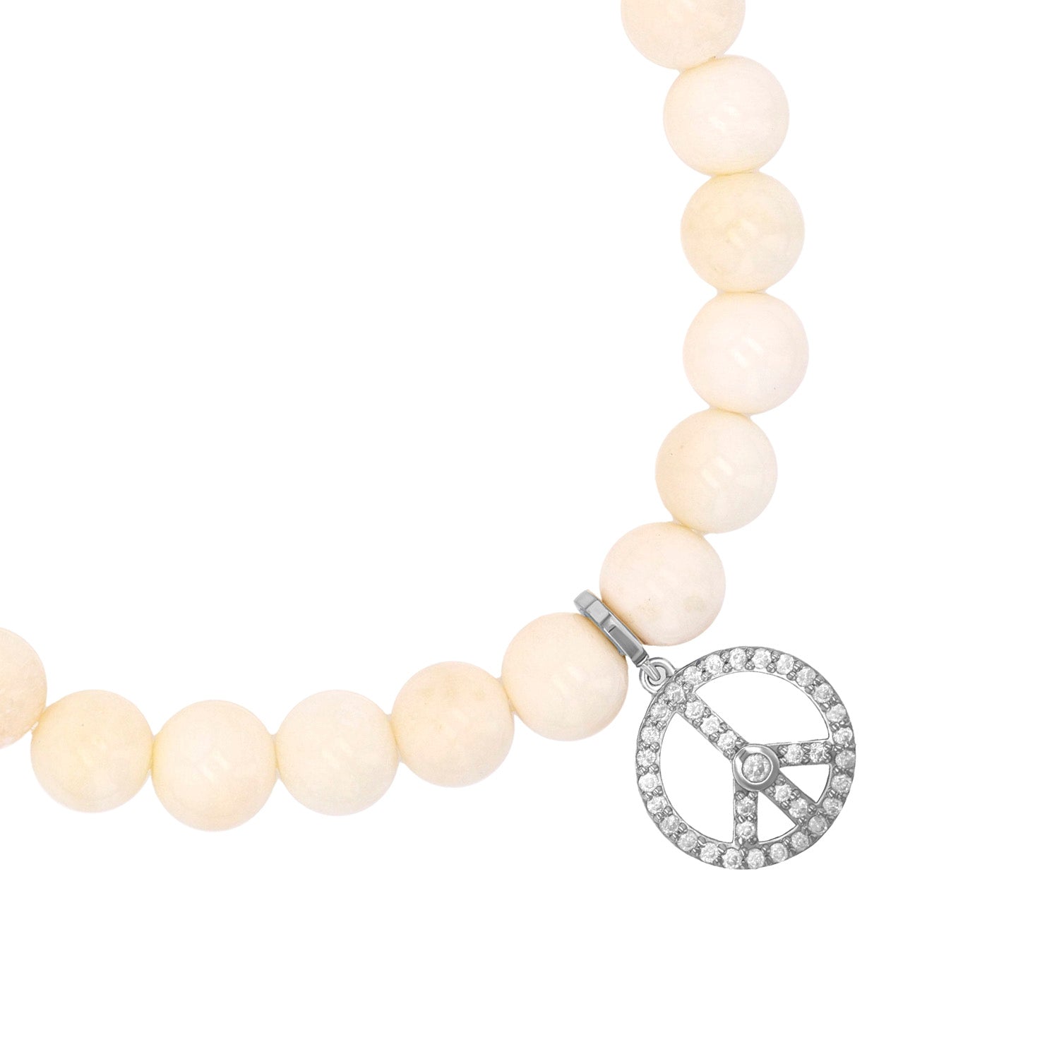 Bone Bracelet with Diamond Peace Sign Charm - 8mm