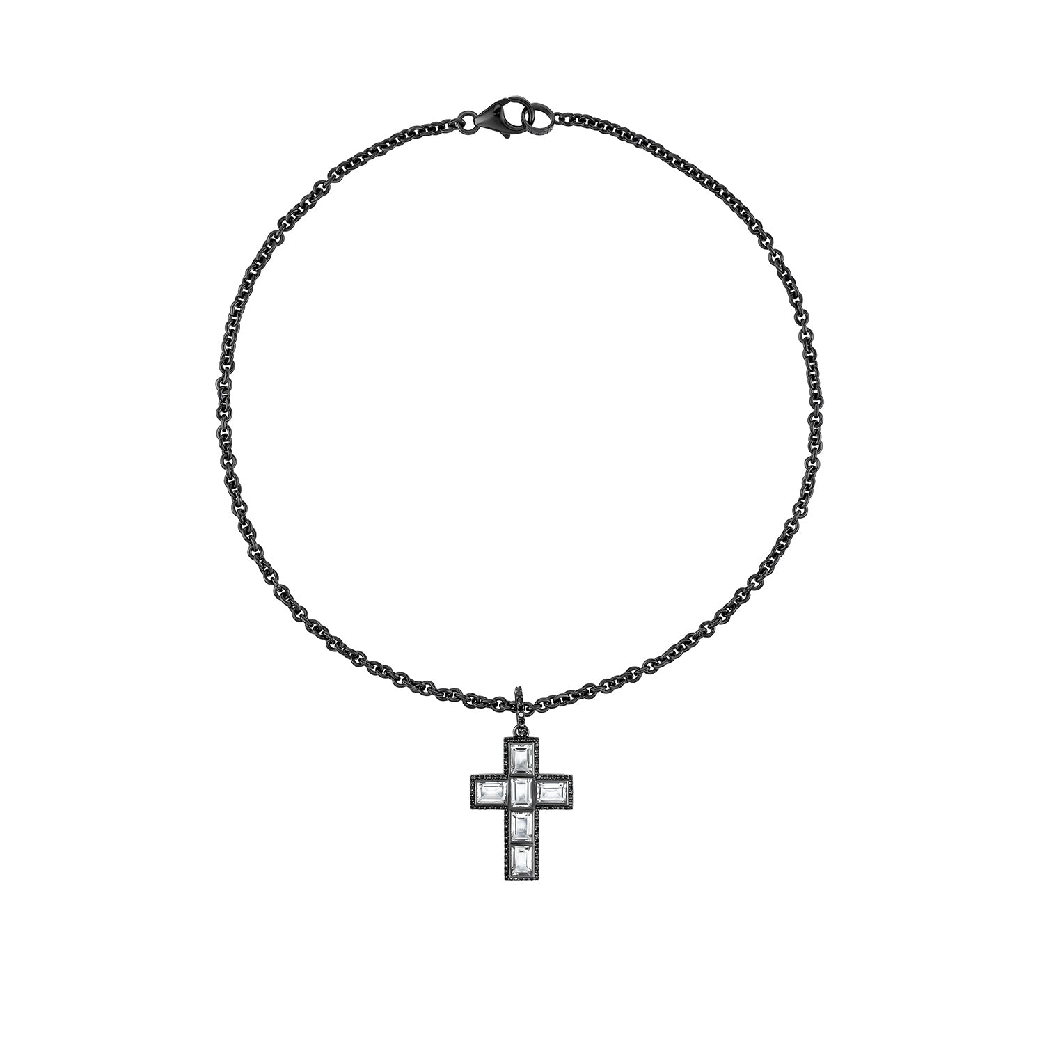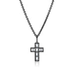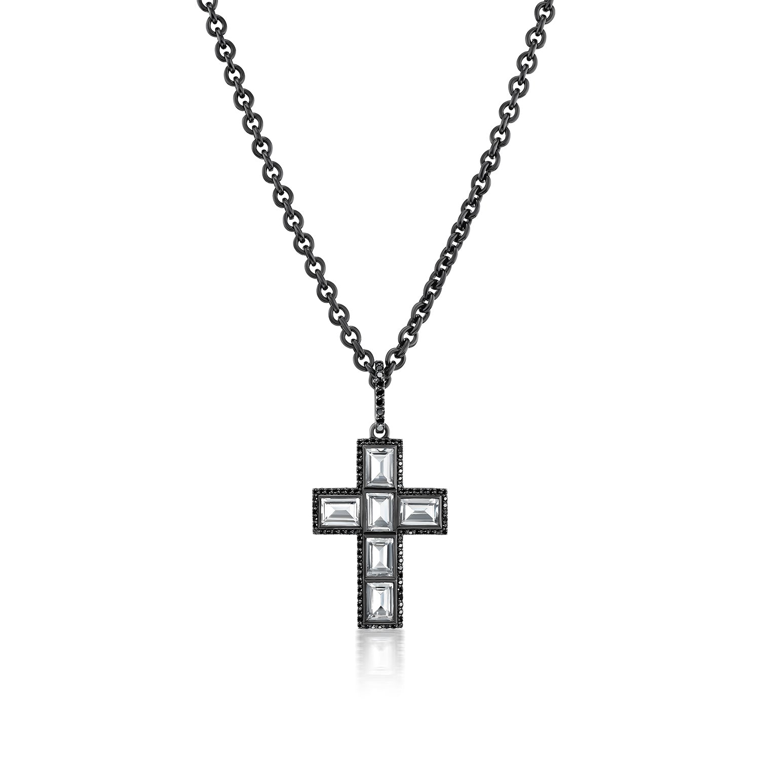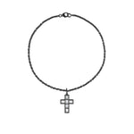 Crystal Quartz & Black Diamond Cross Pendant on Black Cable Chain Necklace - 18"