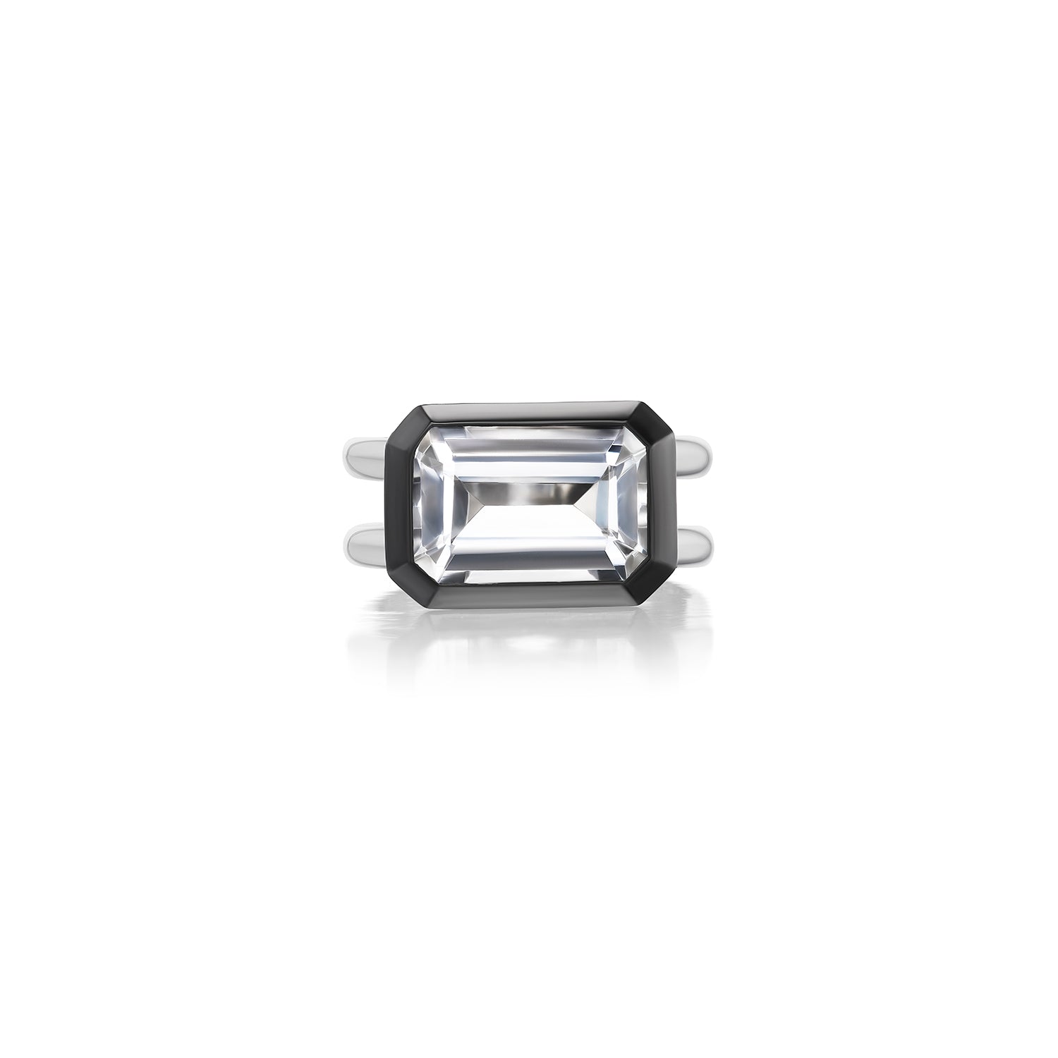 Crystal Quartz with Black Rhodium Trim Double Donut Shank Ring