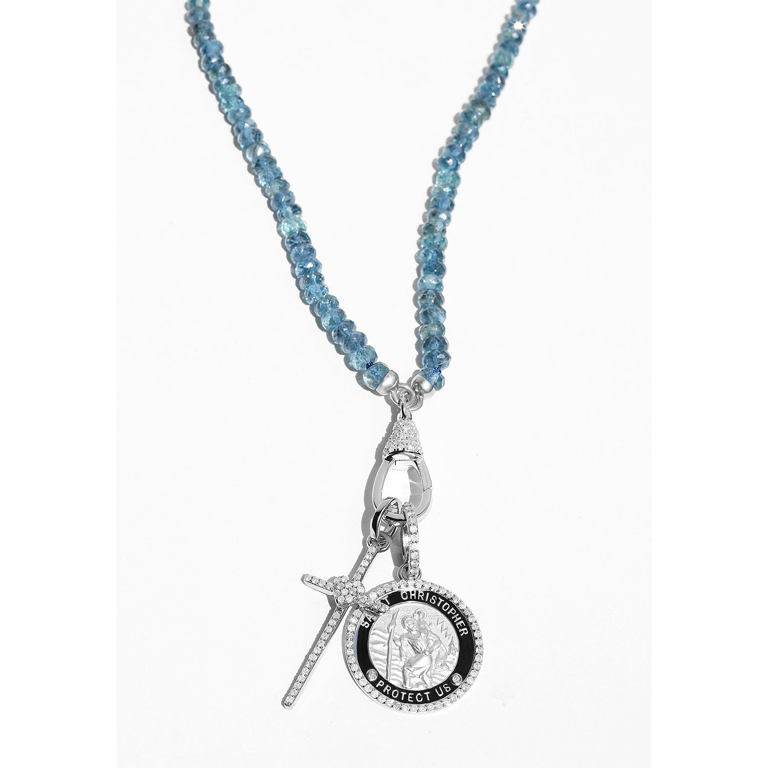 Dark Aquamarine Necklace with Diamond Swivel Clasp - 19"