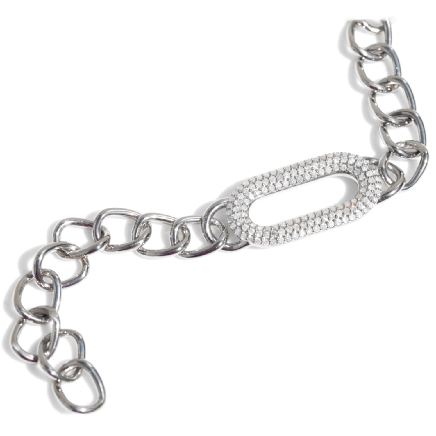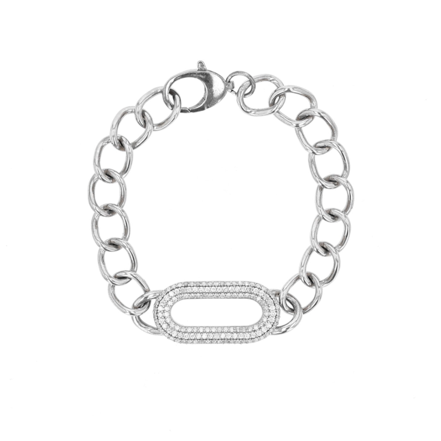 Pave Diamond Puffy Oval Paperclip Chain Bracelet