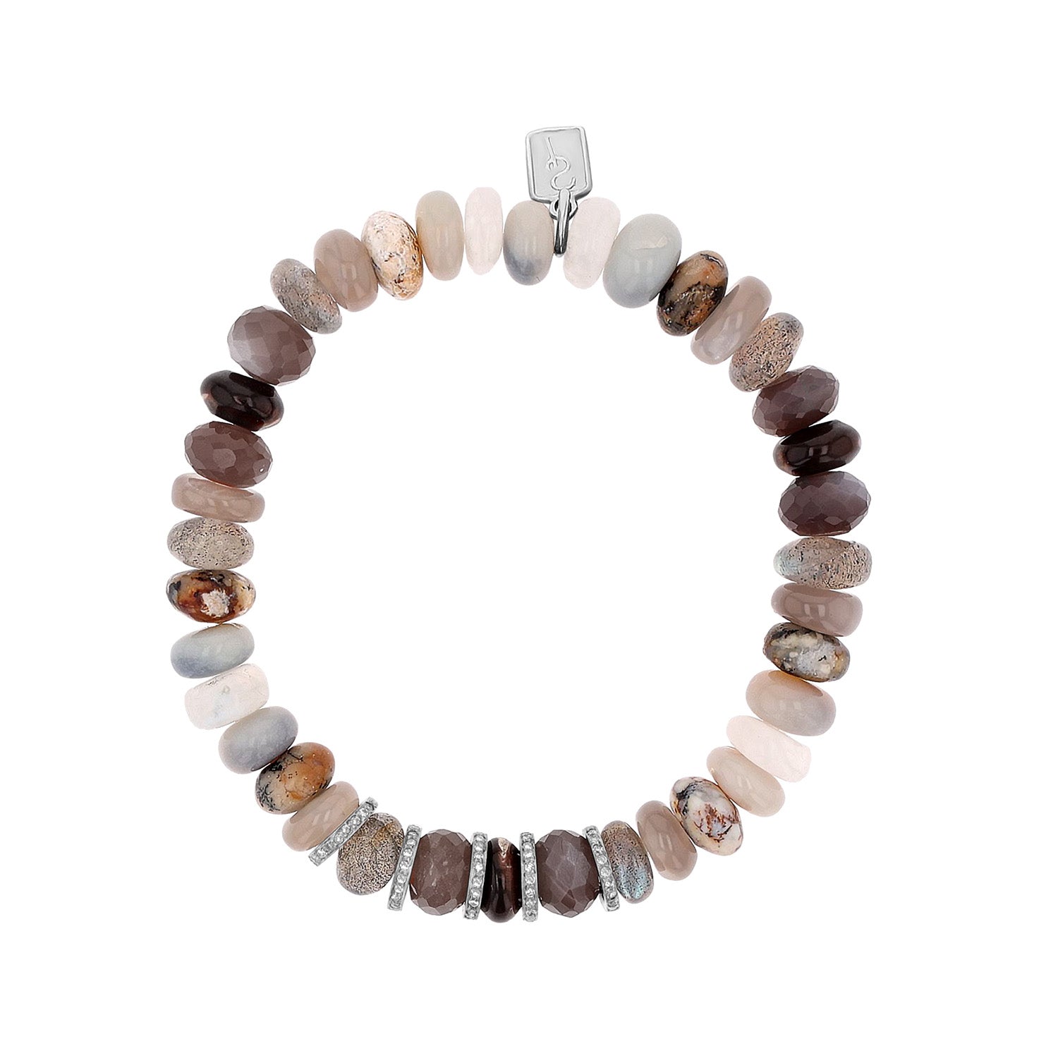 Neutral Gradient Bead Bracelet with 5 Diamond Rondelles