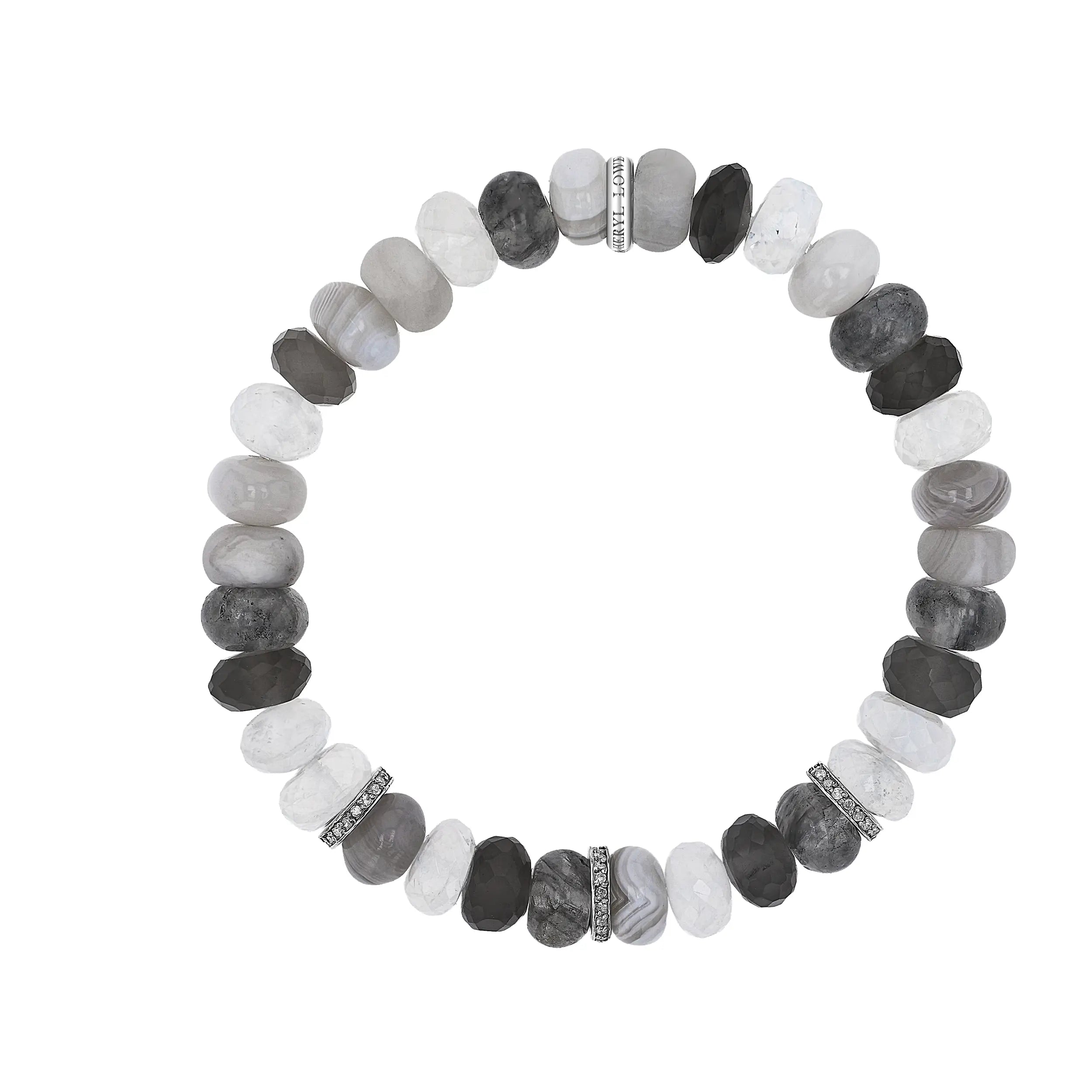 Slate Gemstone Mix Bracelet with Diamond Rondelles - 8mm