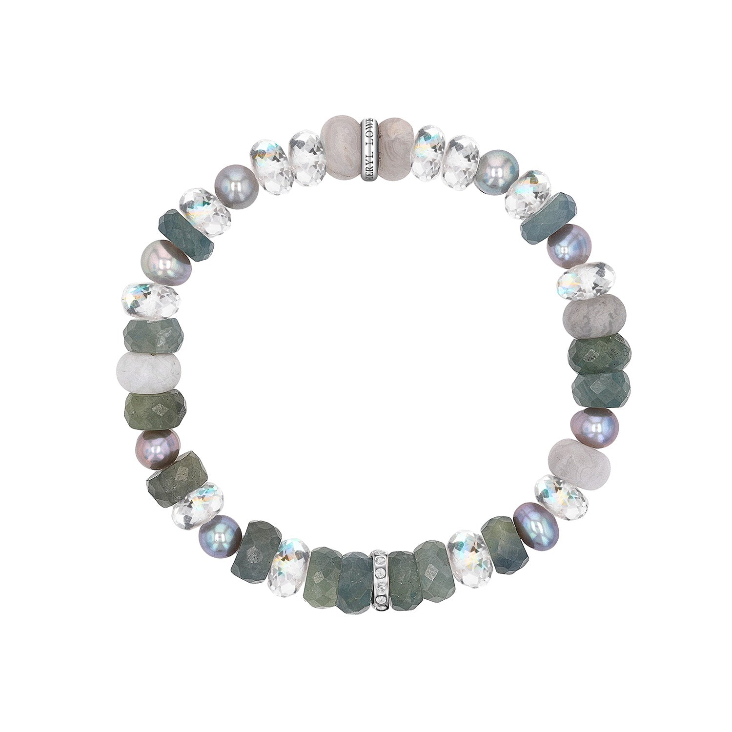 Sterling Gemstone Mix Bracelet with Diamond Rondelle- 8mm