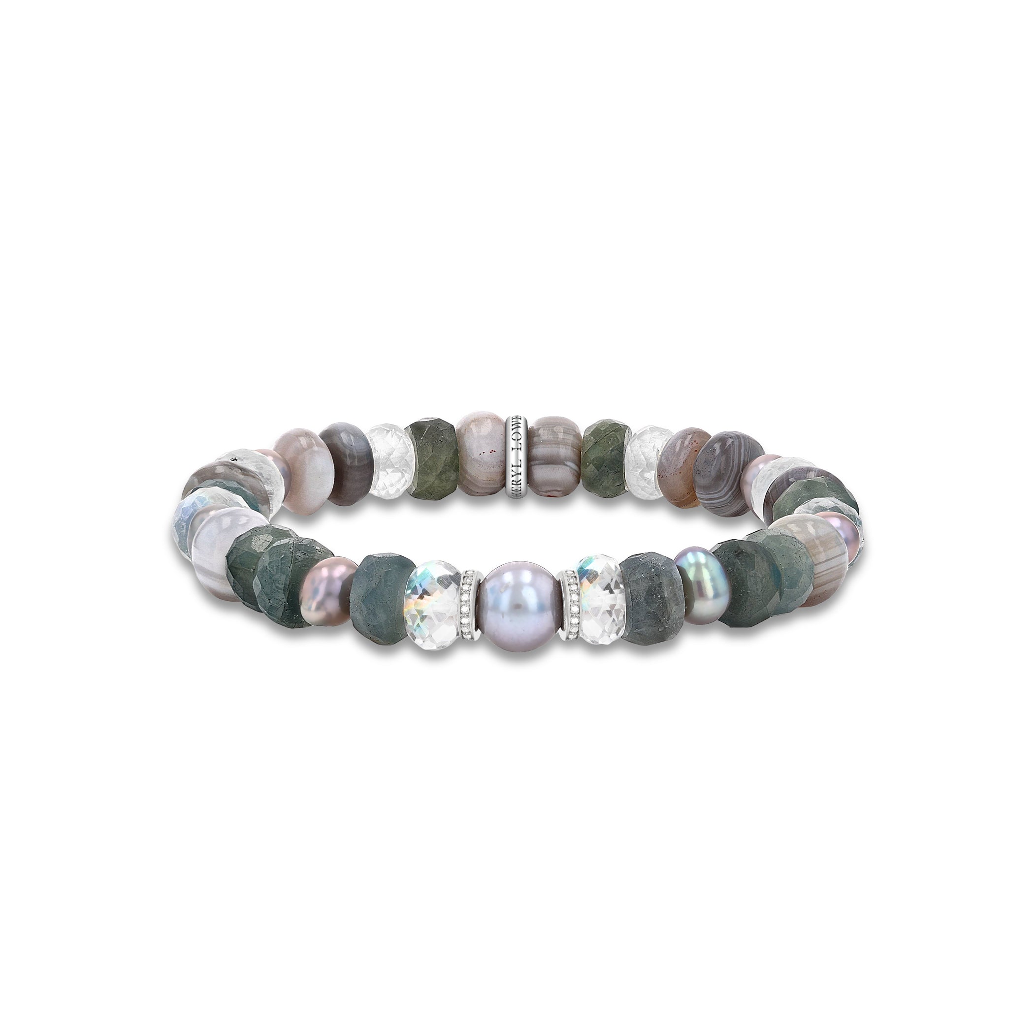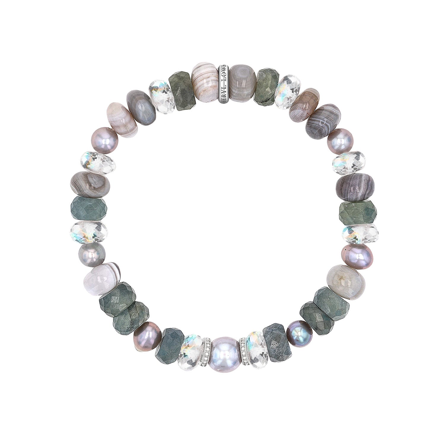 Sterling Gemstone and Pearl Mix Bracelet with Diamond Rondelles - 8mm