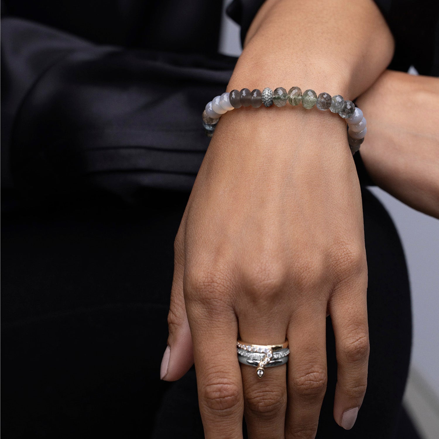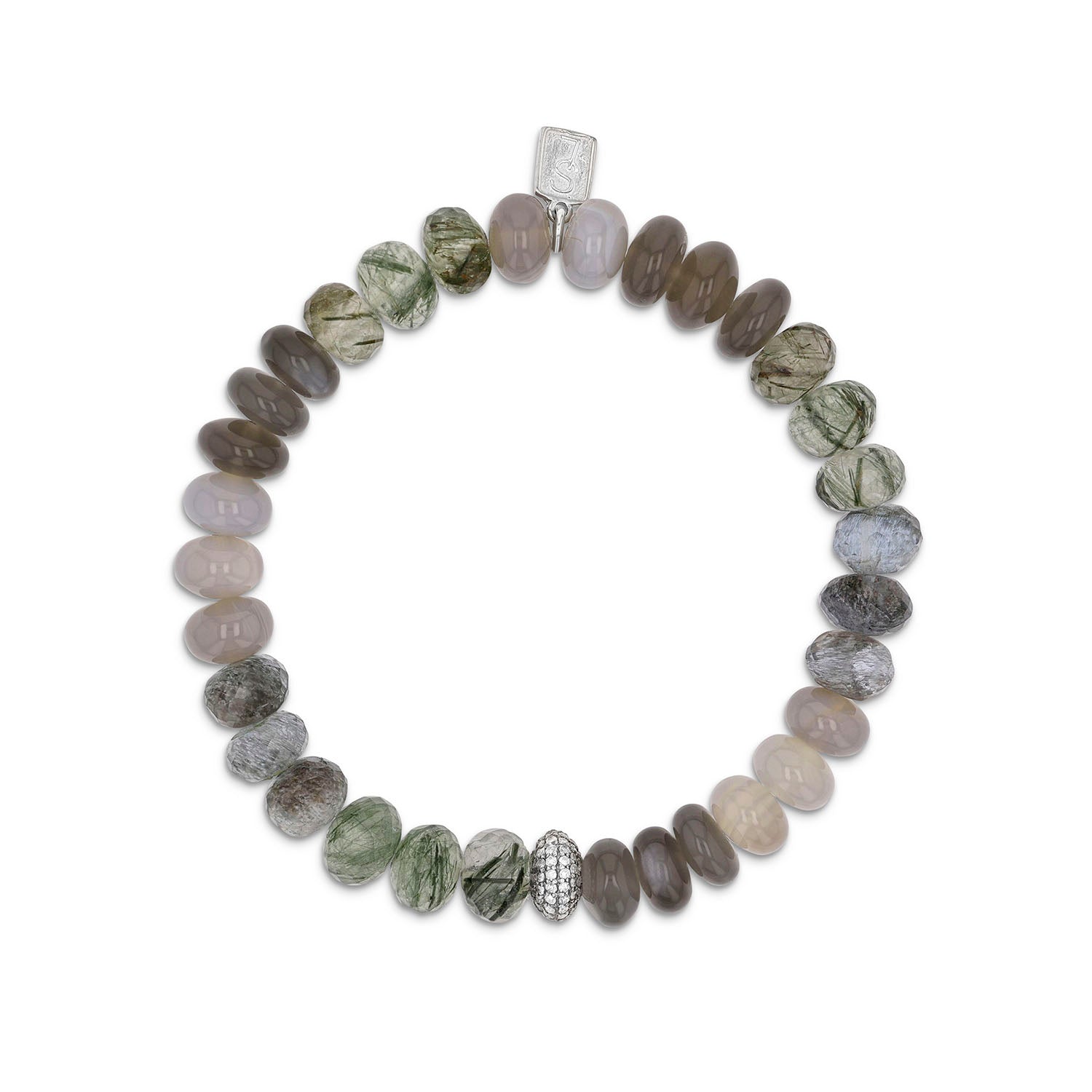 Green & Grey Mix Gemstone Bracelet with 1 Diamond Donut - 8mm