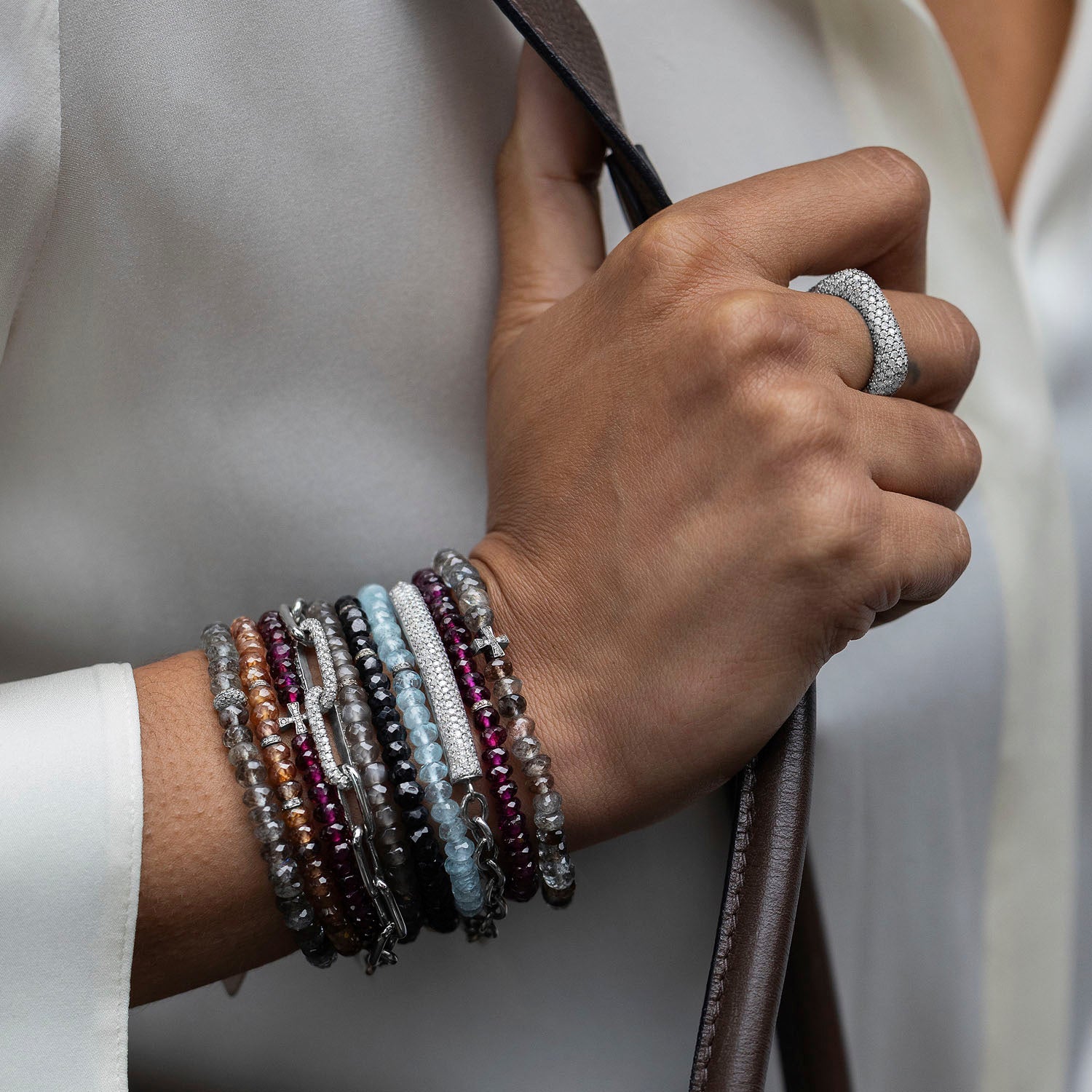 Grey Moonstone Mini Bracelet with 1 Diamond Rondelle - 5mm