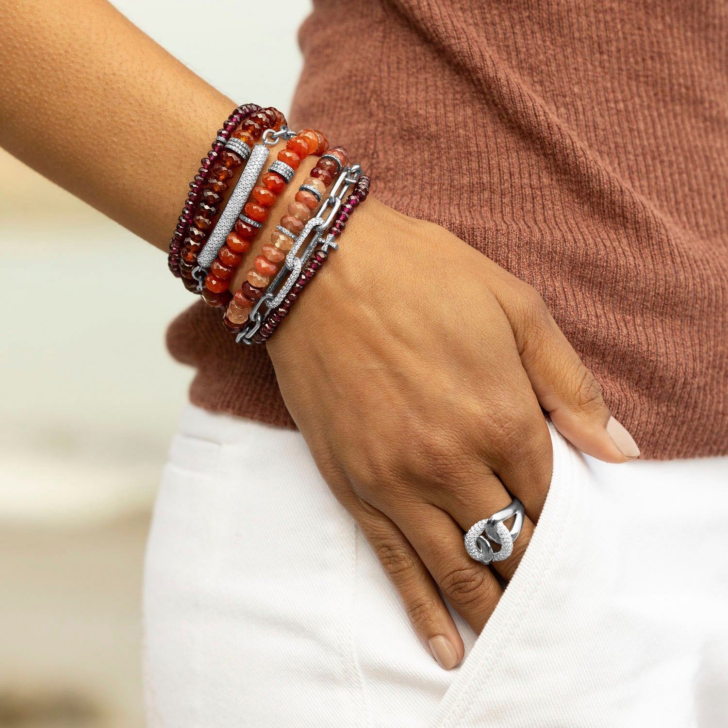 Hessonite Garnet Bracelet with Diamond Rondelles - 8mm