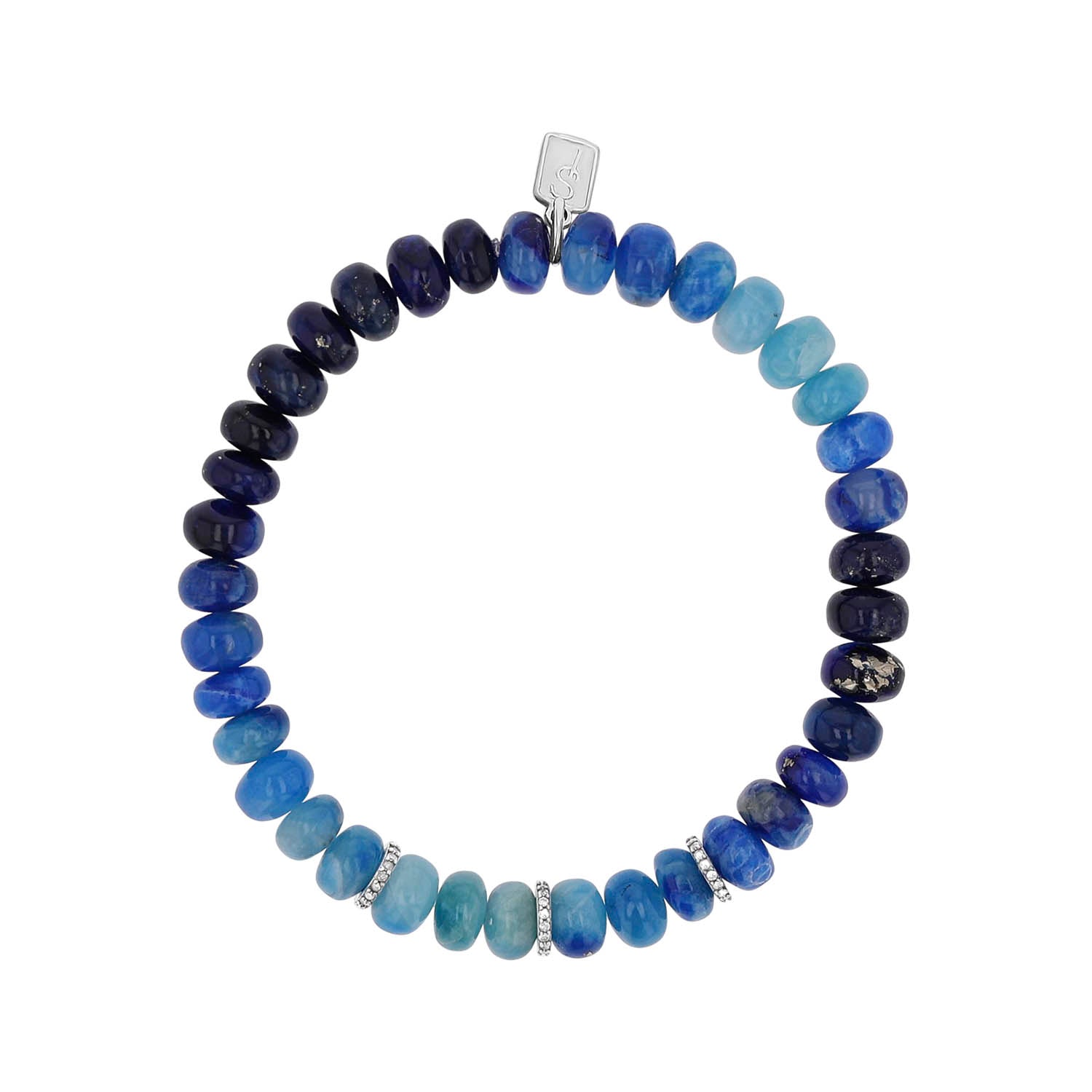 Discover the captivating beauty of the Afghanite Ombre Beaded Bracelet, crafted with 7mm blue Afghanite beads that fade gracefully in an ombre effect. Enhanced by three dazzling diamond rondelles, this bracelet adds a touch of luxury and sophistication to any outfit.