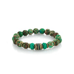 Men's Mr. LOWE Jasper Green Mix Bracelet with African Bead & Metal Disks - 10mm