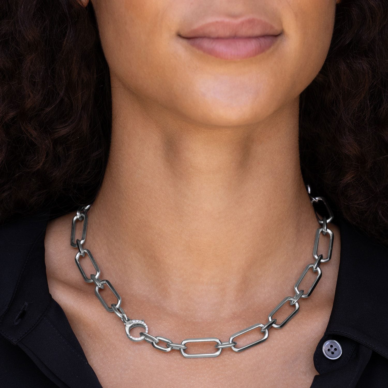 A light yet substantial chain that is designed to be worn with the diamond clasp either frontwards or backwards.