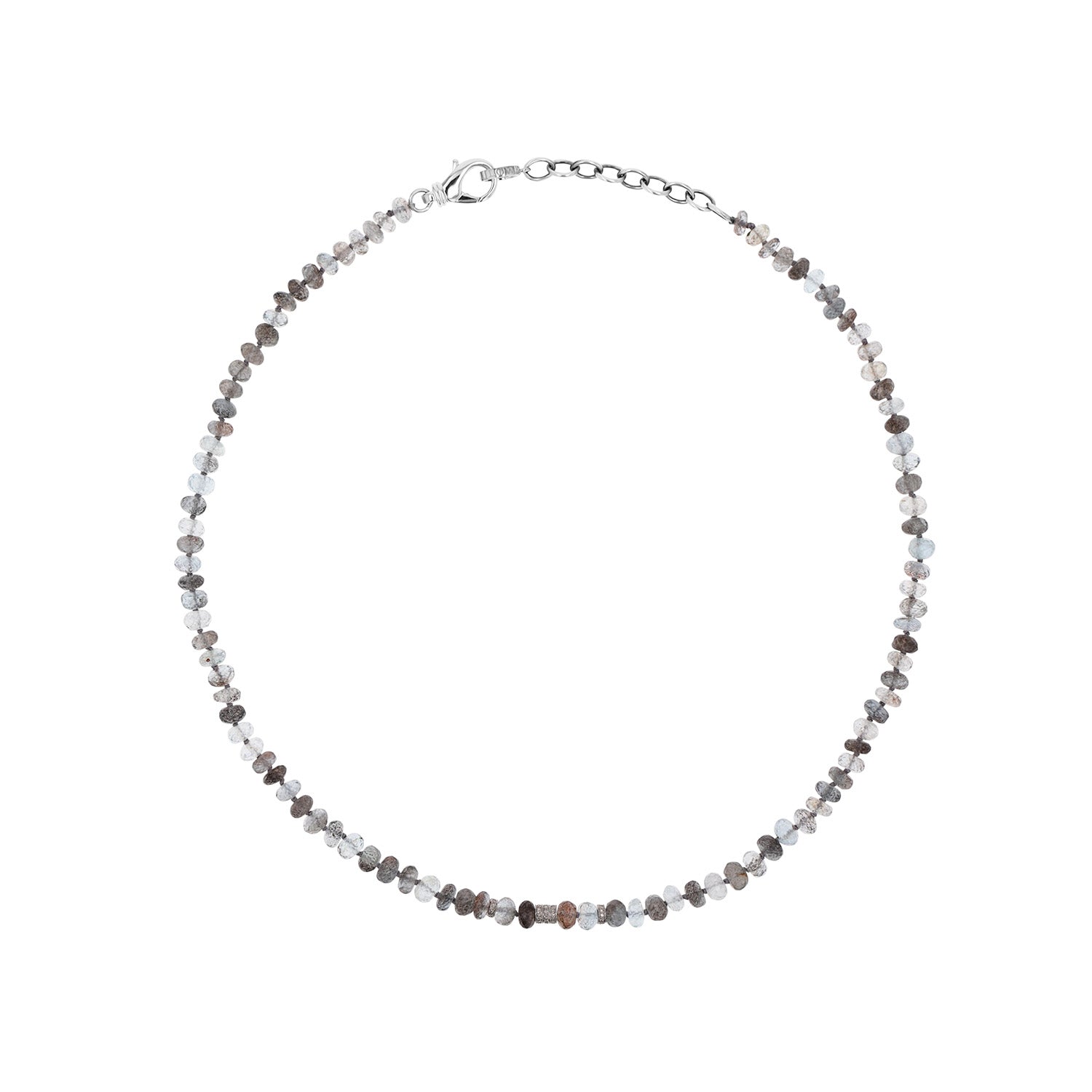 Moss Aquamarine Knotted Necklace with 5 Diamond Rondelles - 16-18"