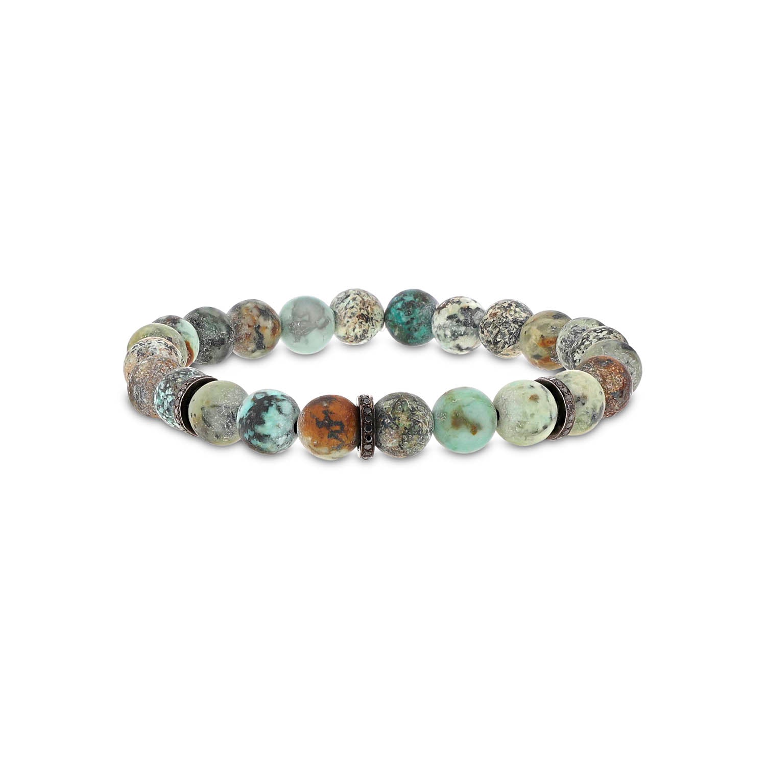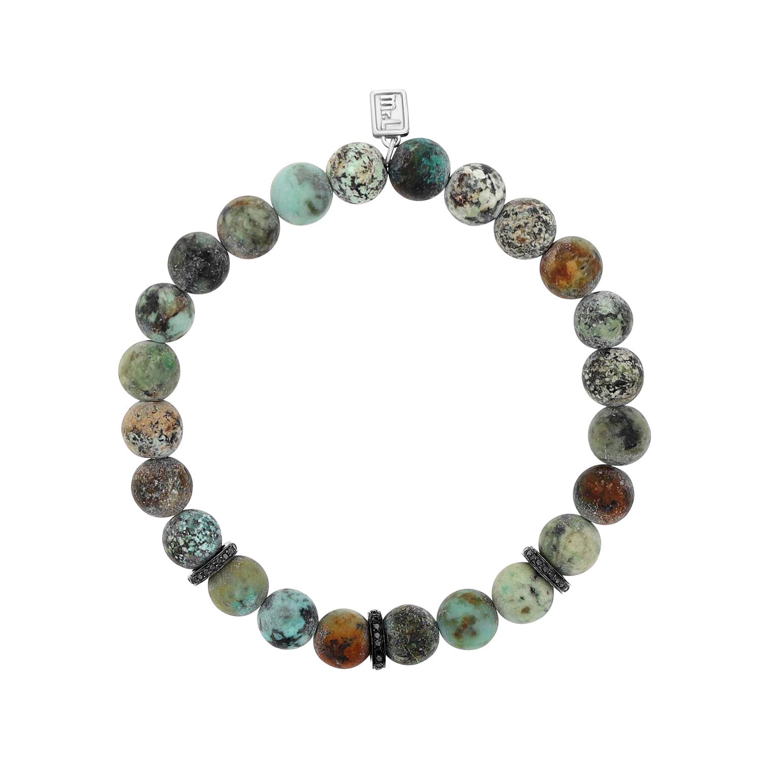 Men's Mr. LOWE African Turquoise Bracelet with Black Diamond Rondelles - 8mm