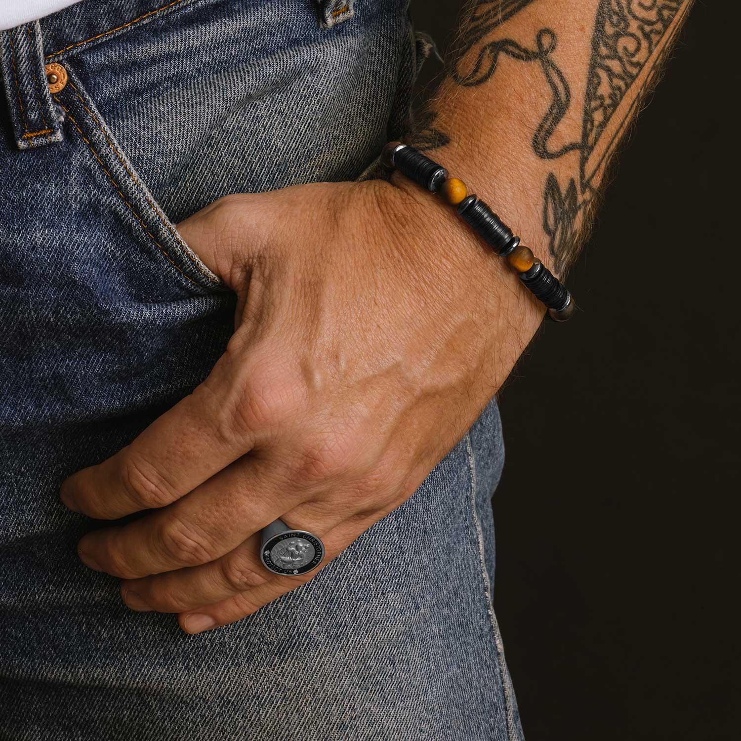 Men's Mr. LOWE Matte Tiger's Eye, Hematite and Vinyl Bracelet - 8mm
