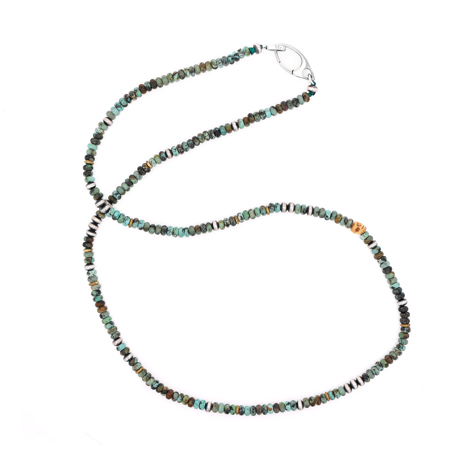 Men's Mr. LOWE African Turquoise with Carved Skull Necklace - 23"
