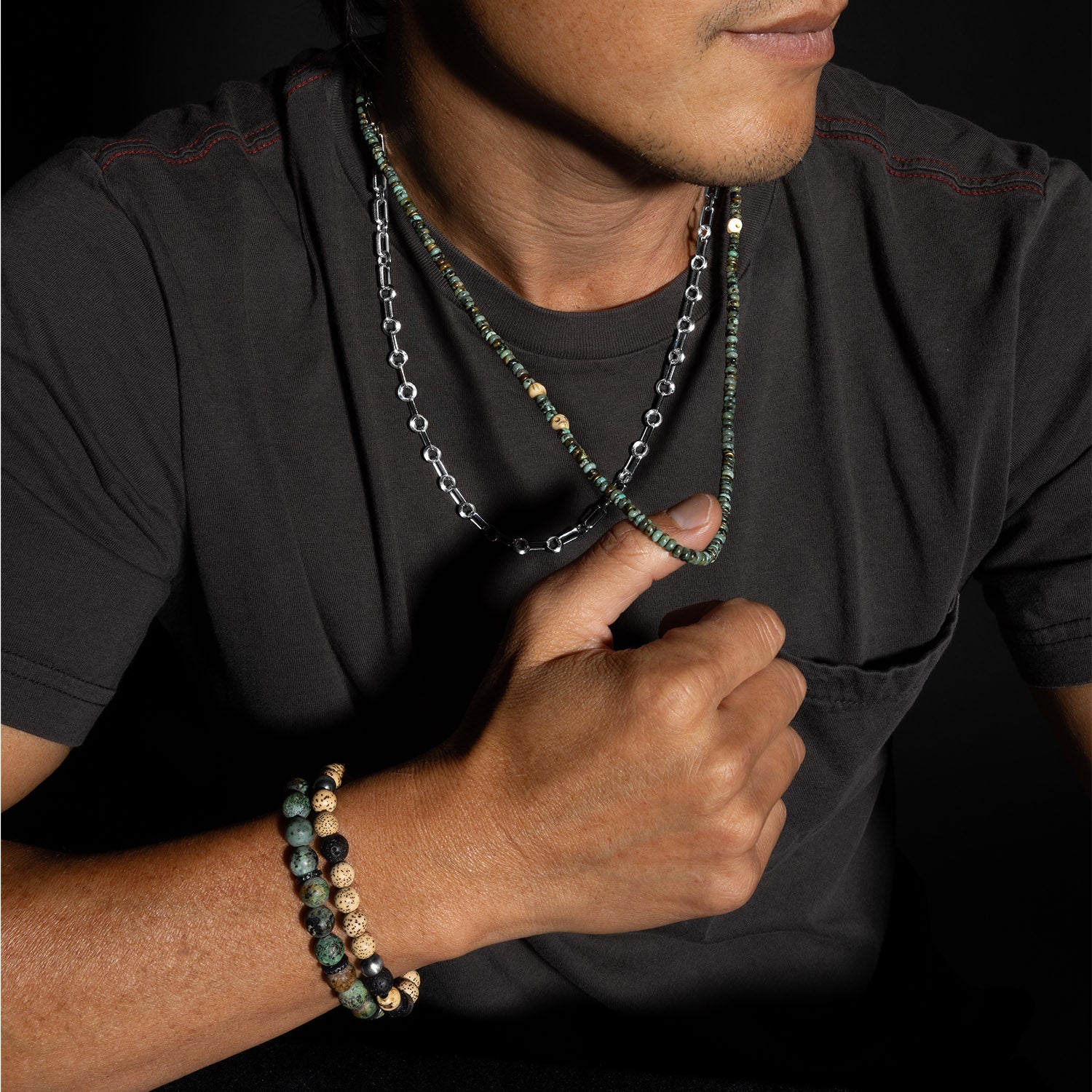 Men's Mr. LOWE African Turquoise with Carved Skull Necklace - 25"