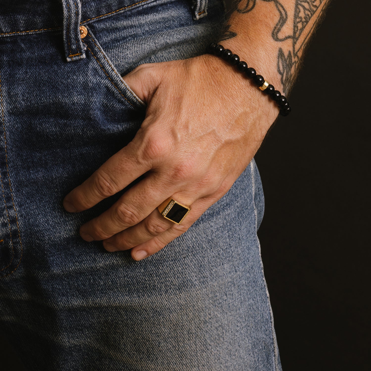 Men's Mr. LOWE Onyx Bracelet with 14k Gold Rondelle - 8mm