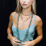 - Semi-precious stone mix: lavender amethyst, natural turquoise, grandidierite, citrine, carnelian, garnet, prehnite, paraiba blue quartz, guava quartz