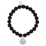Onyx Bracelet with Diamond Open Clover Charm - 8mm