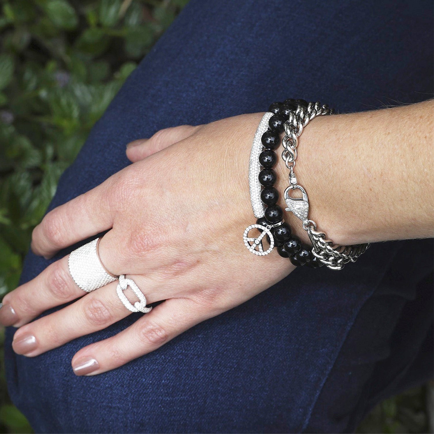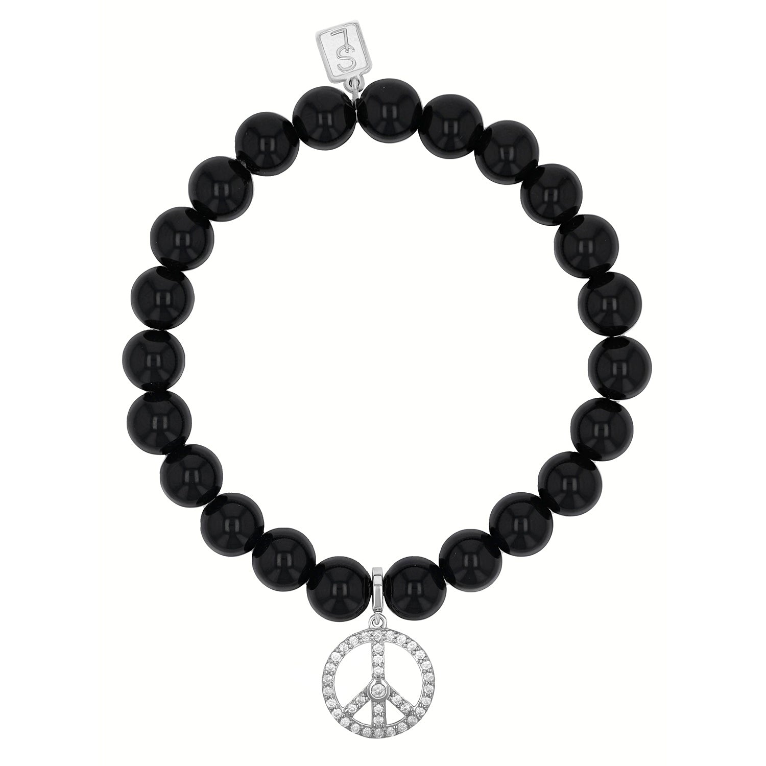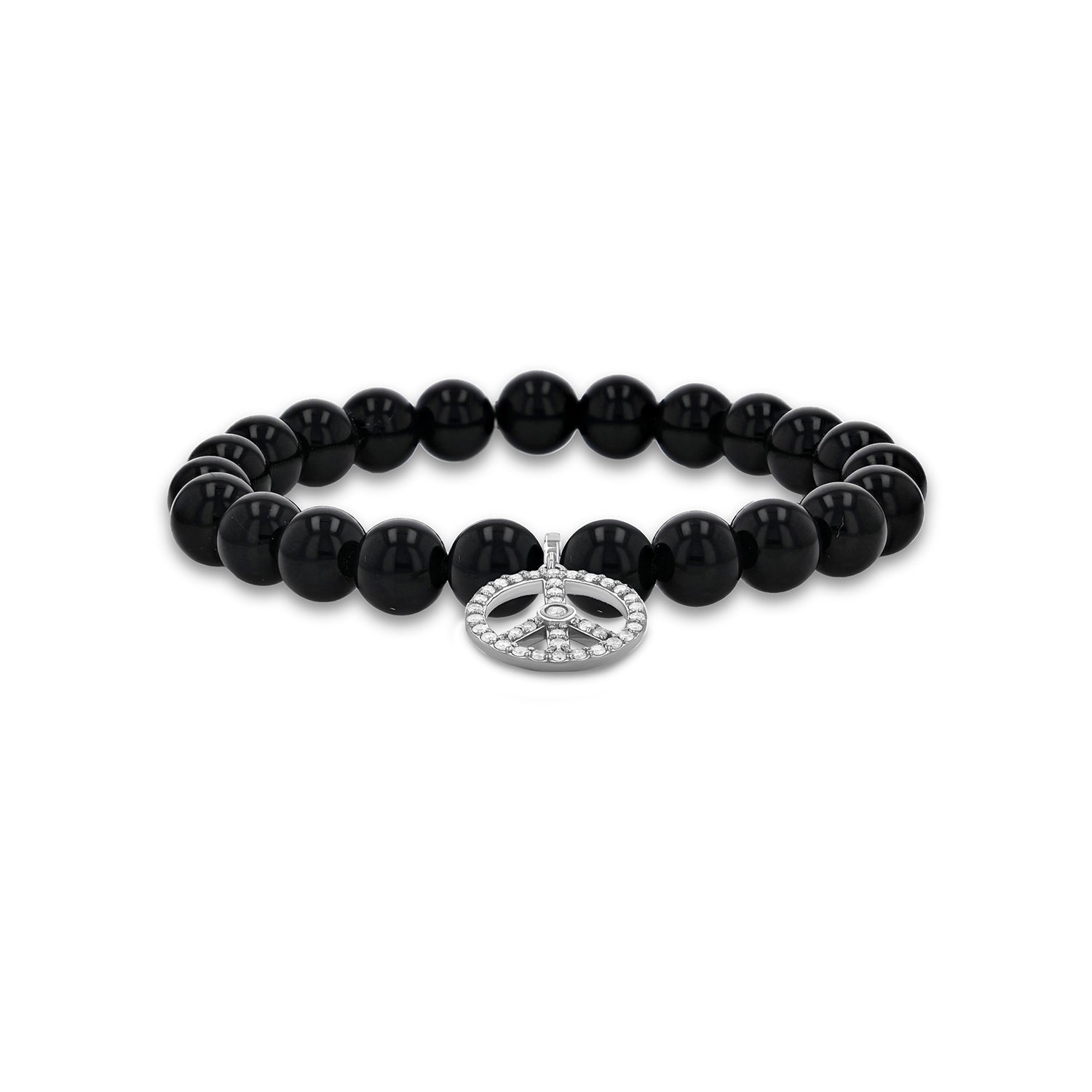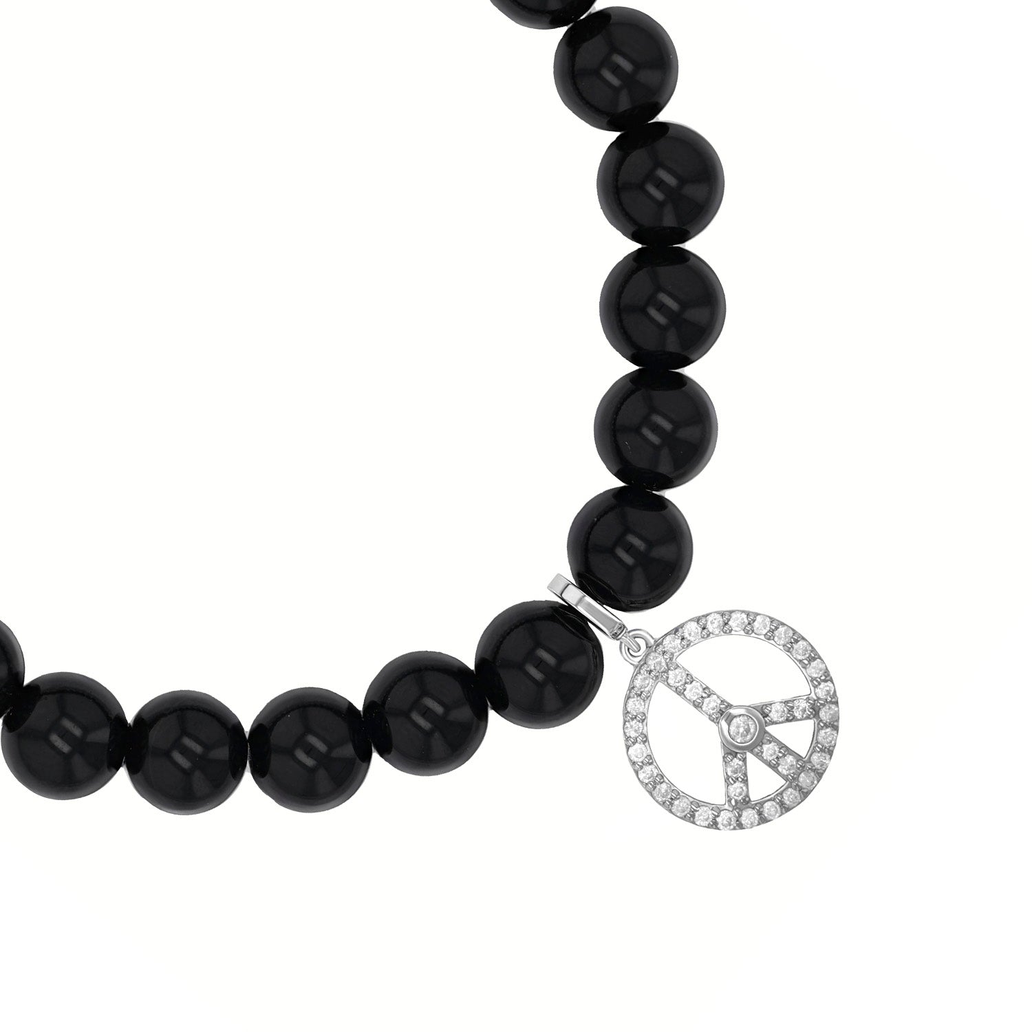Onyx Bracelet with Diamond Peace Sign Charm - 8mm
