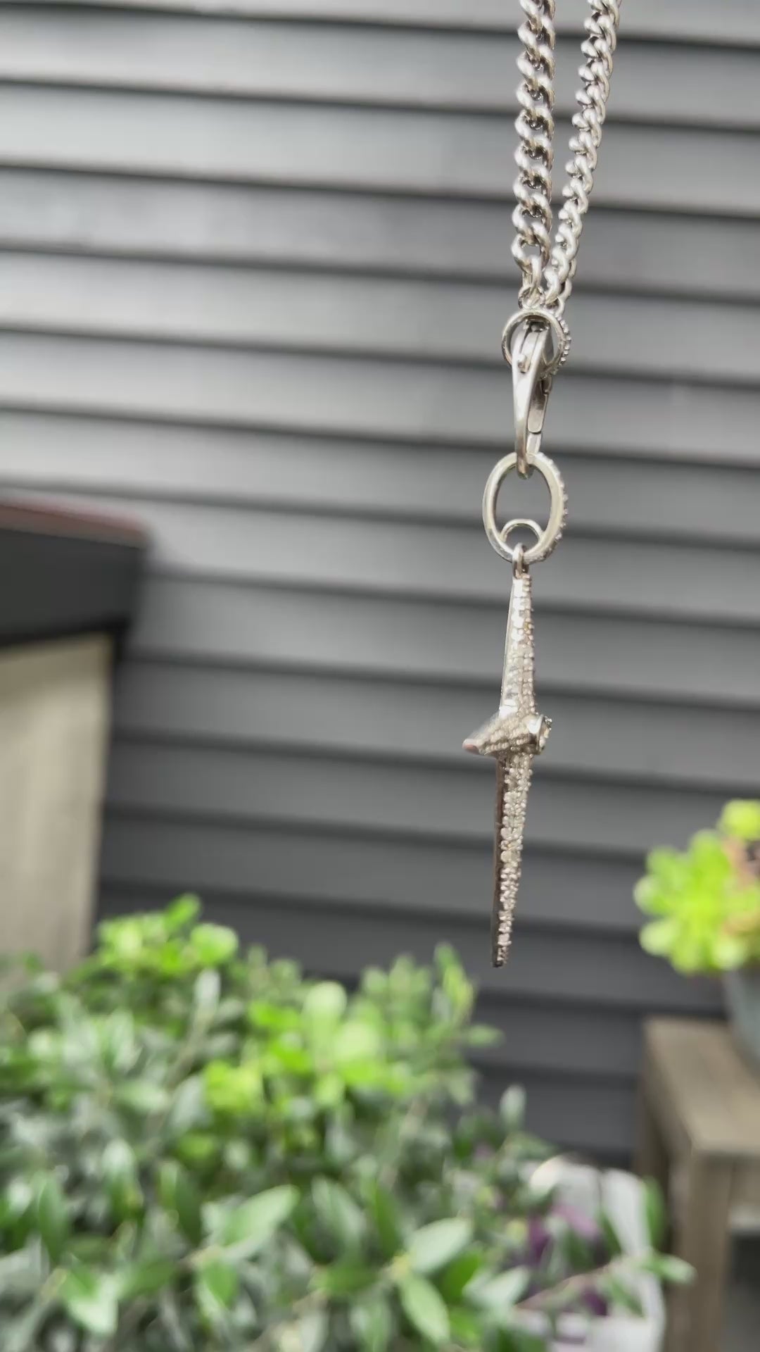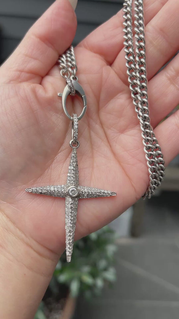 Men's chain necklace with pavé diamond star cross pendant with a center bezel set diamond.