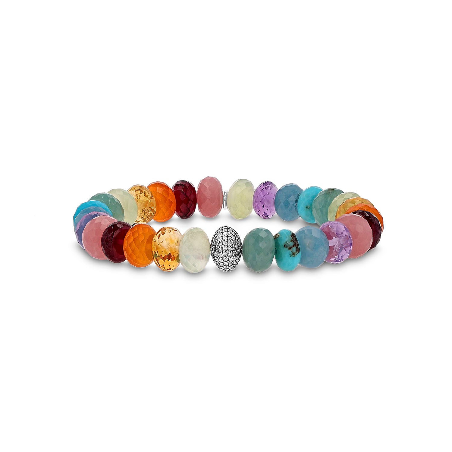 Rainbow Gemstone Mix Bracelet with Diamond Rondelle Bead - 10mm