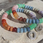 Rainbow Opal Mix Bracelet with Diamond Open Heart Charm - 8mm