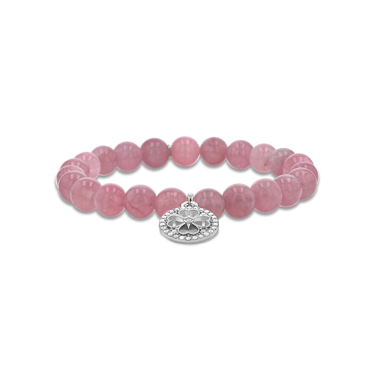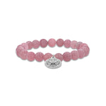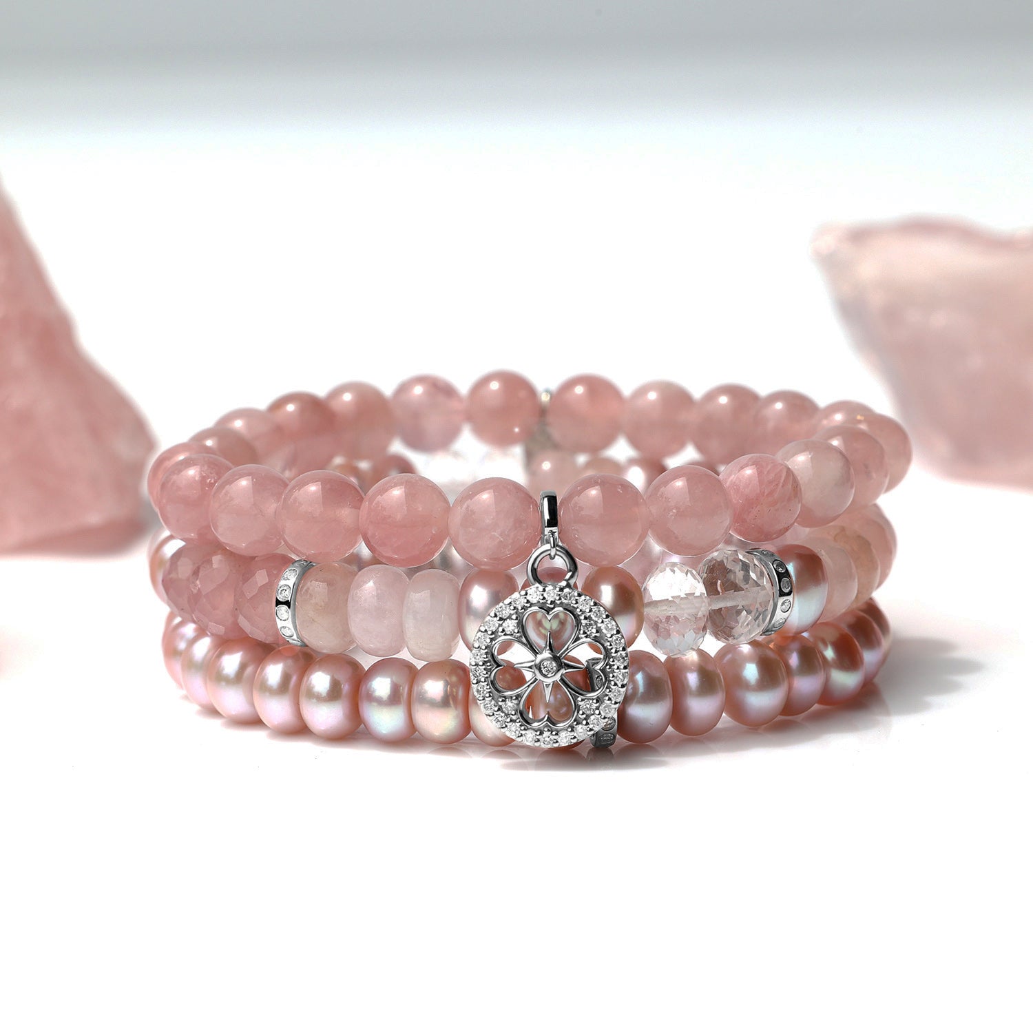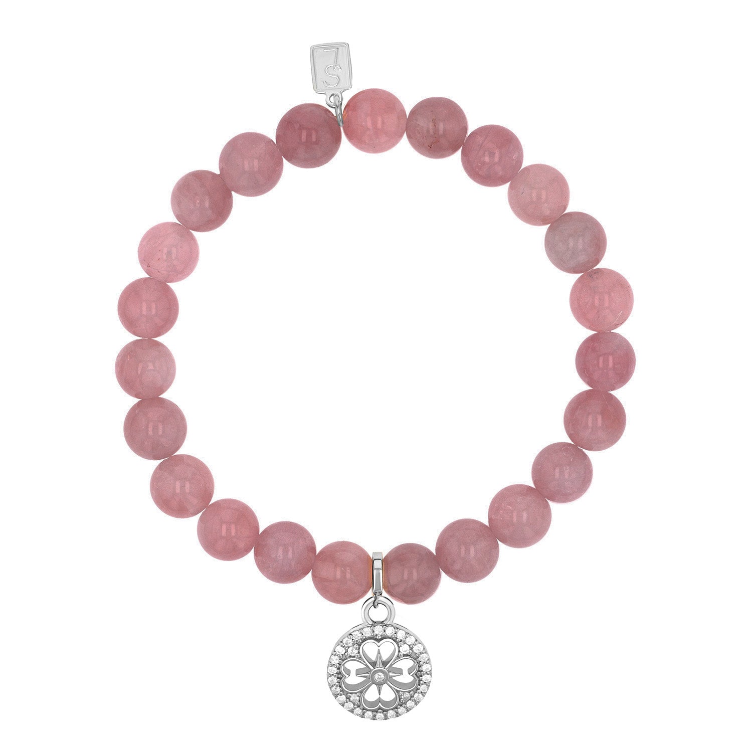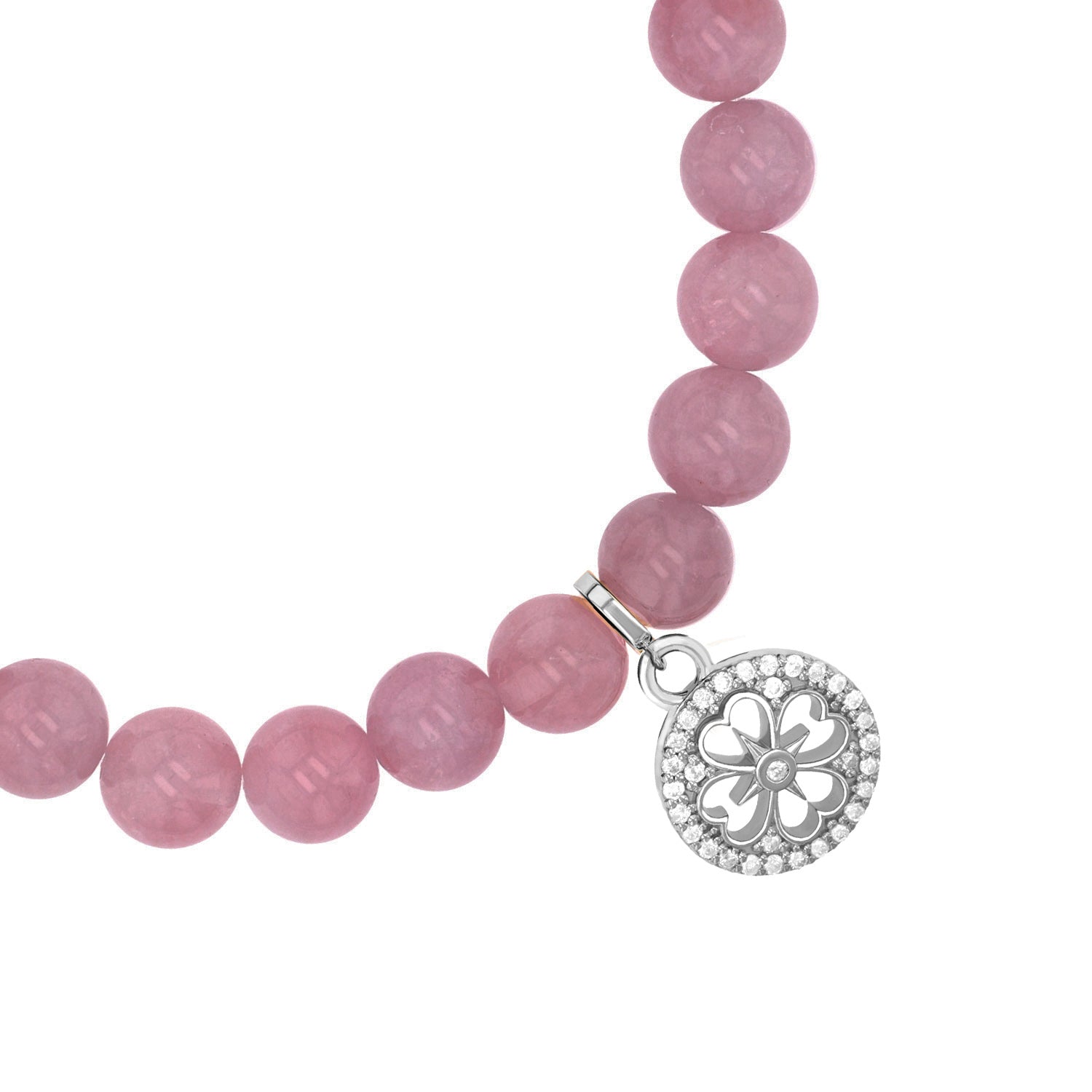 Rose Quartz Bracelet with Diamond Open Clover Charm - 8mm